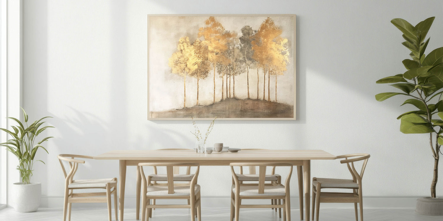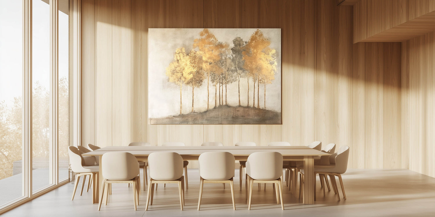 Transform your home with this stunning golden tree landscape. Its warm palette and serene composition make it an ideal piece for living rooms, dining areas, or offices, enhancing the ambiance with its timeless beauty.
