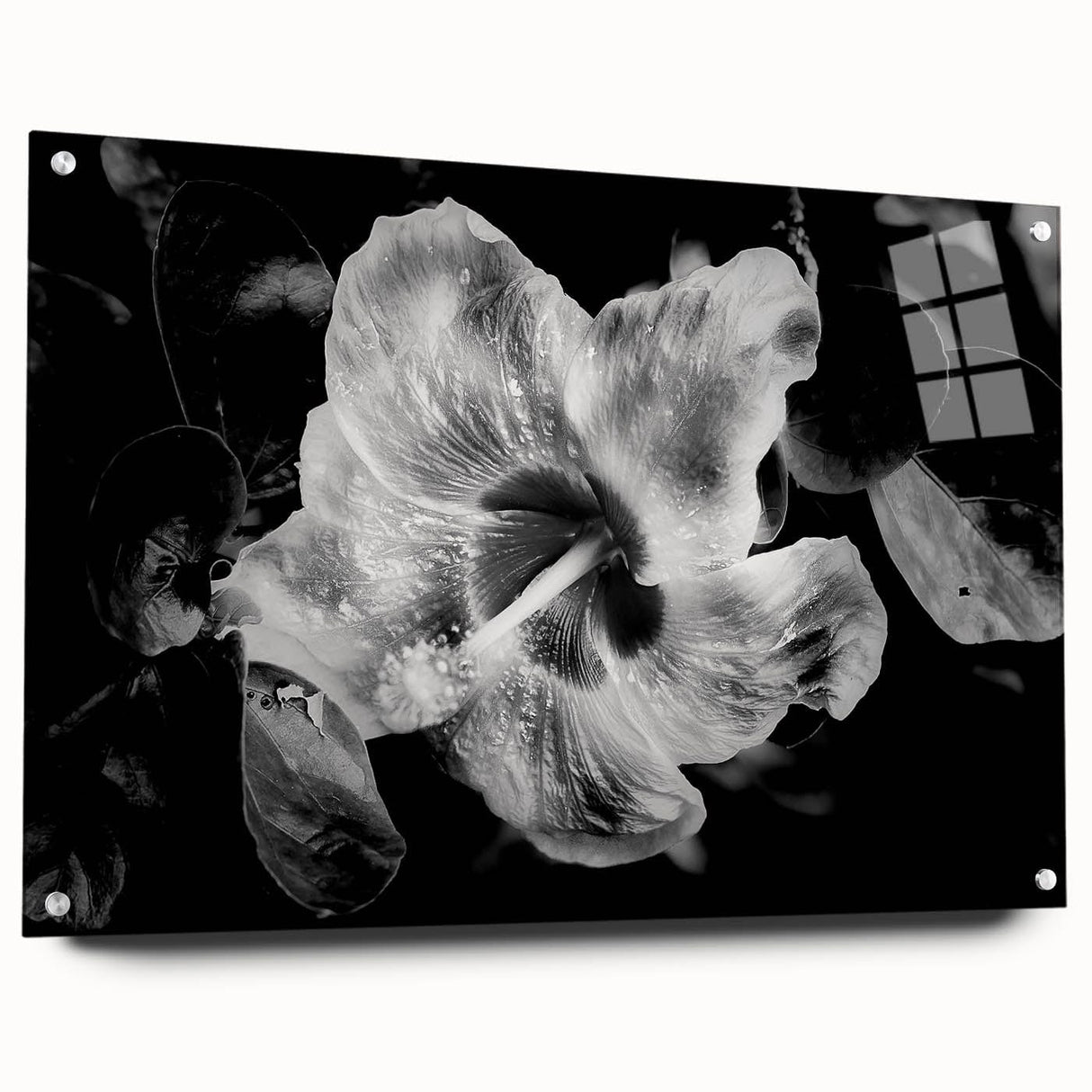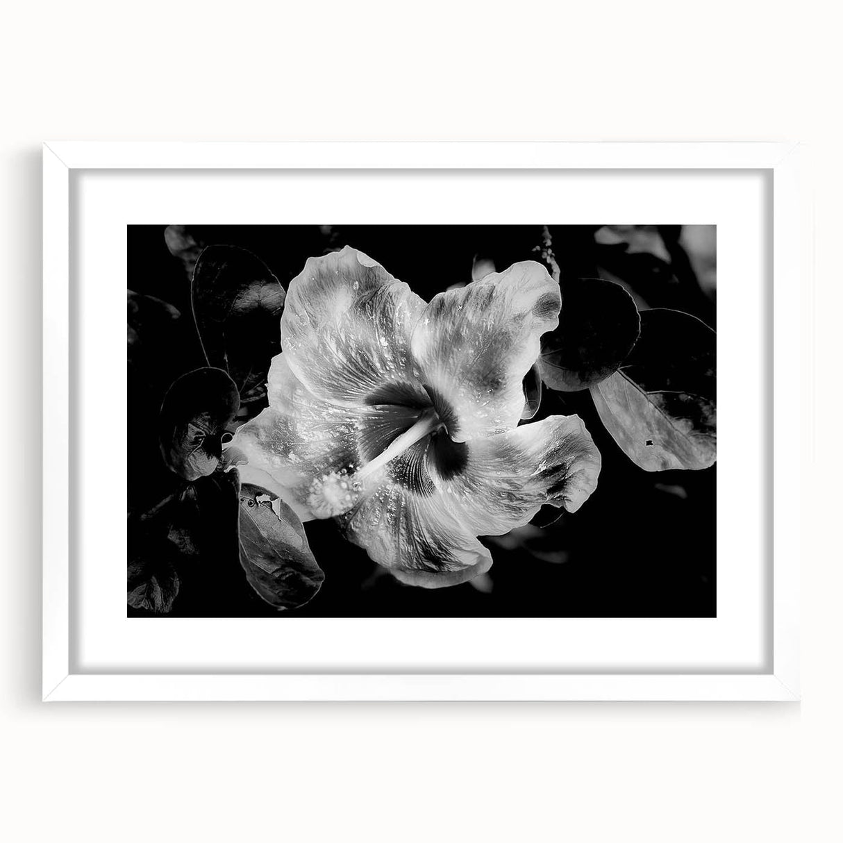 Celebrate the delicate beauty of nature with this exquisite fine art photography canvas print. Featuring a high-contrast black-and-white hibiscus flower covered in water droplets, this piece showcases the intricate details of its petals with stunning clarity.