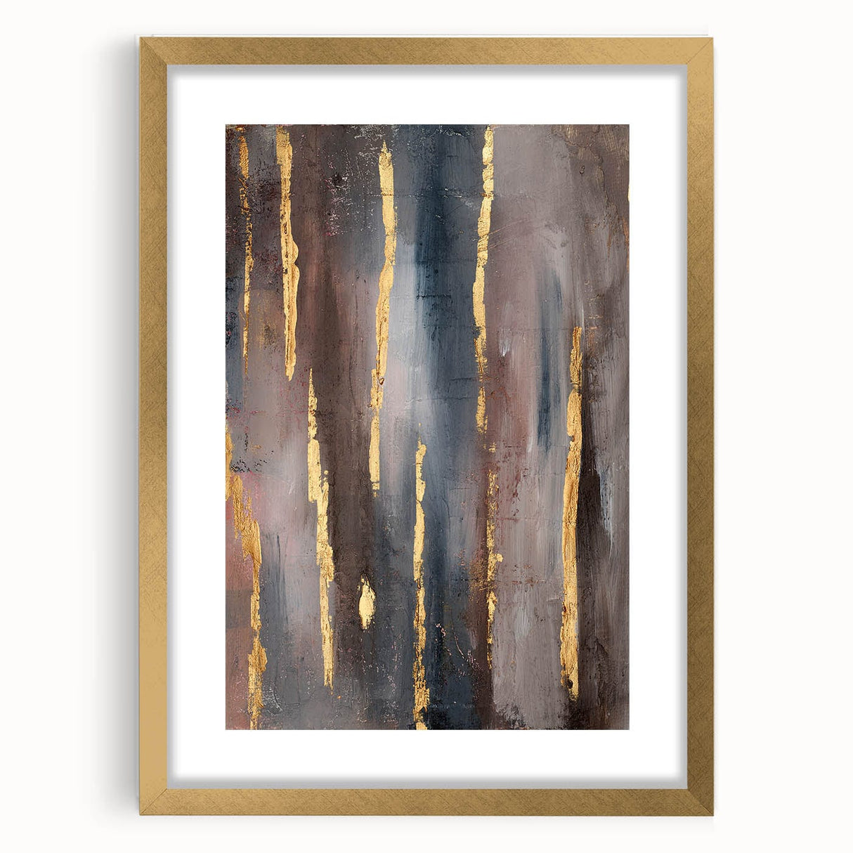 Luxury Moody Modern Wall Art - Abstract Gray, Gold & Brown Print