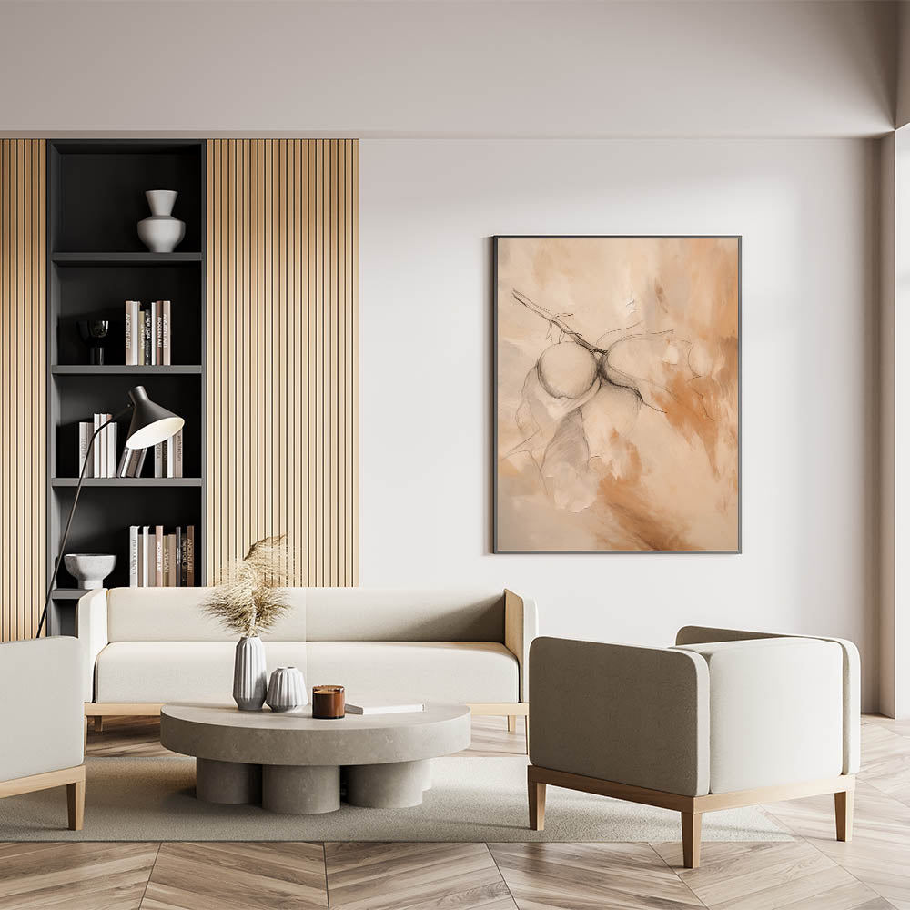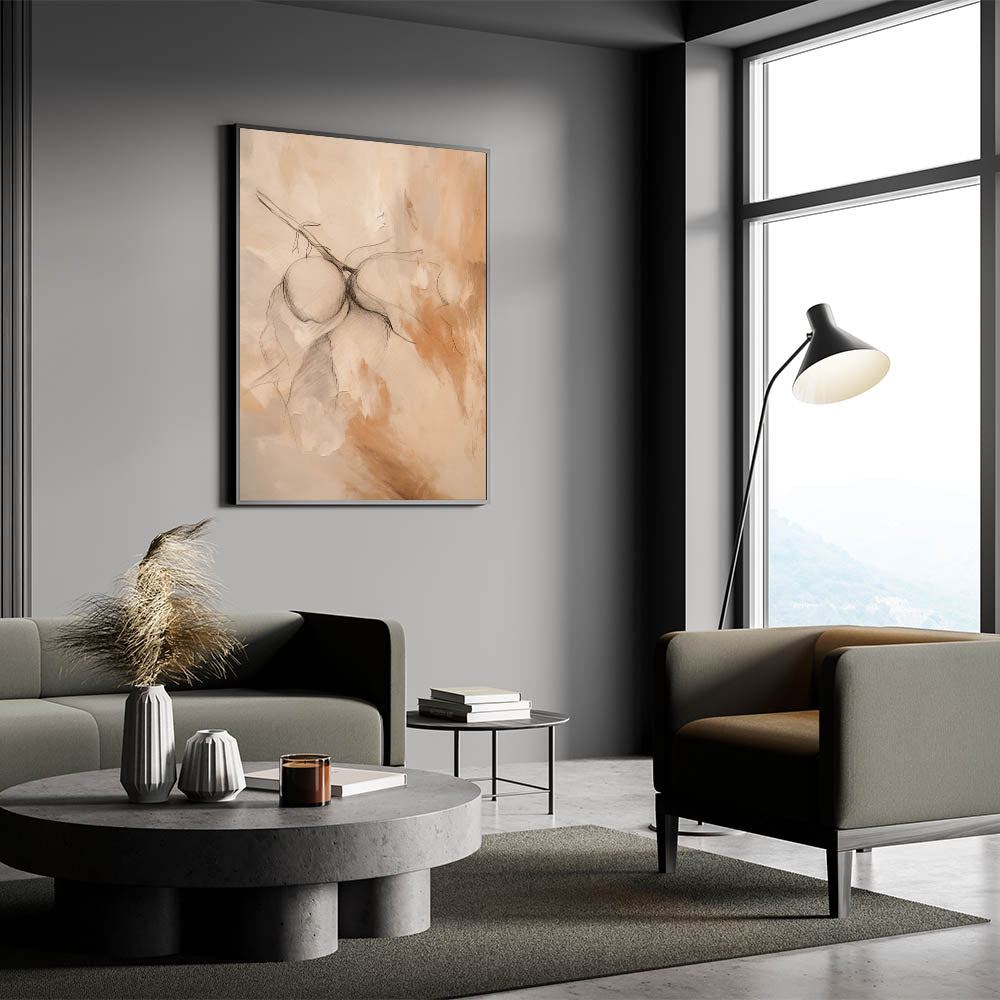Add a touch of nature to your home with this elegant minimalist botanical wall art. Featuring a delicate line drawing of fruit branches against a warm, abstract background, this piece seamlessly blends natural elements with modern minimalist design. The soft earthy tones and refined composition make it a versatile addition to any contemporary space.
