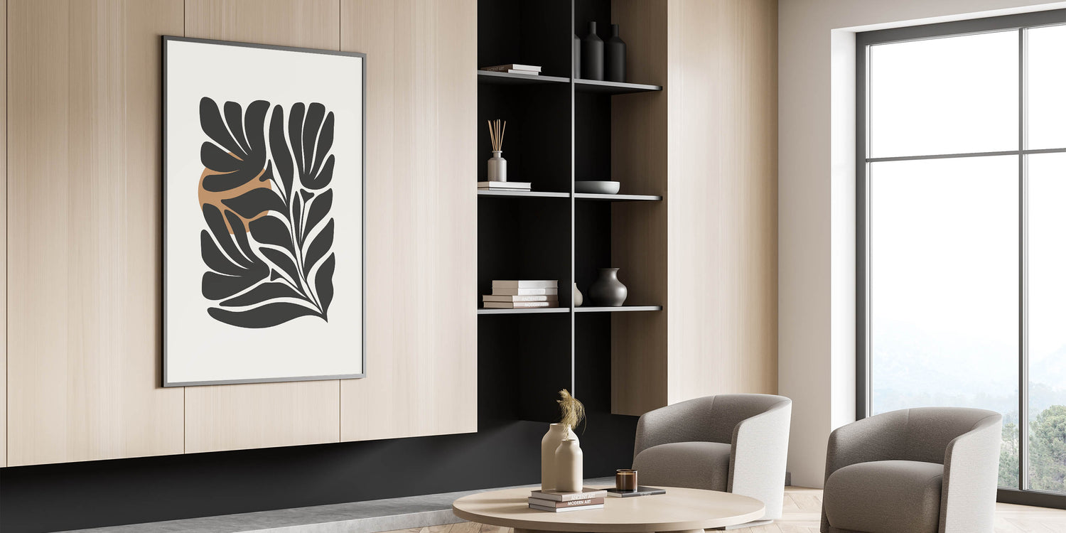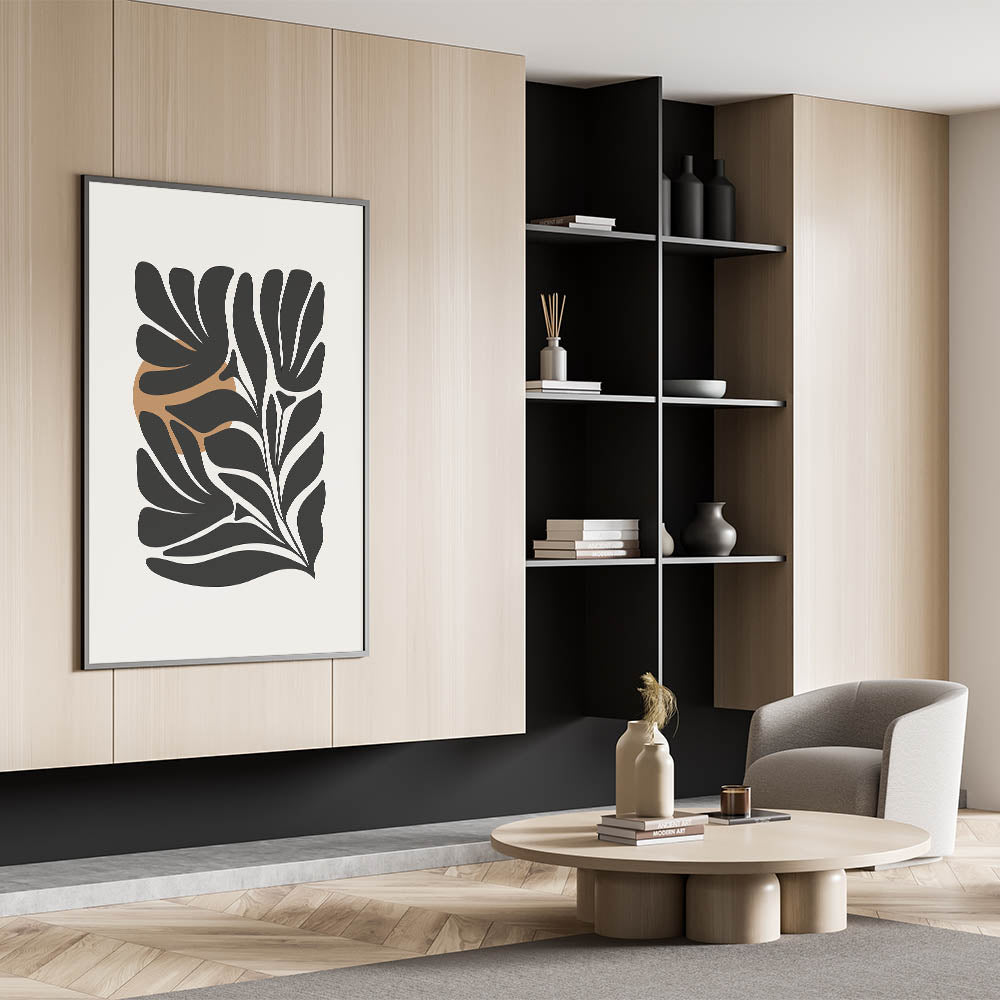 Minimalist Botanical Art | Modern Black & Beige Leaf Design | Wall Decor