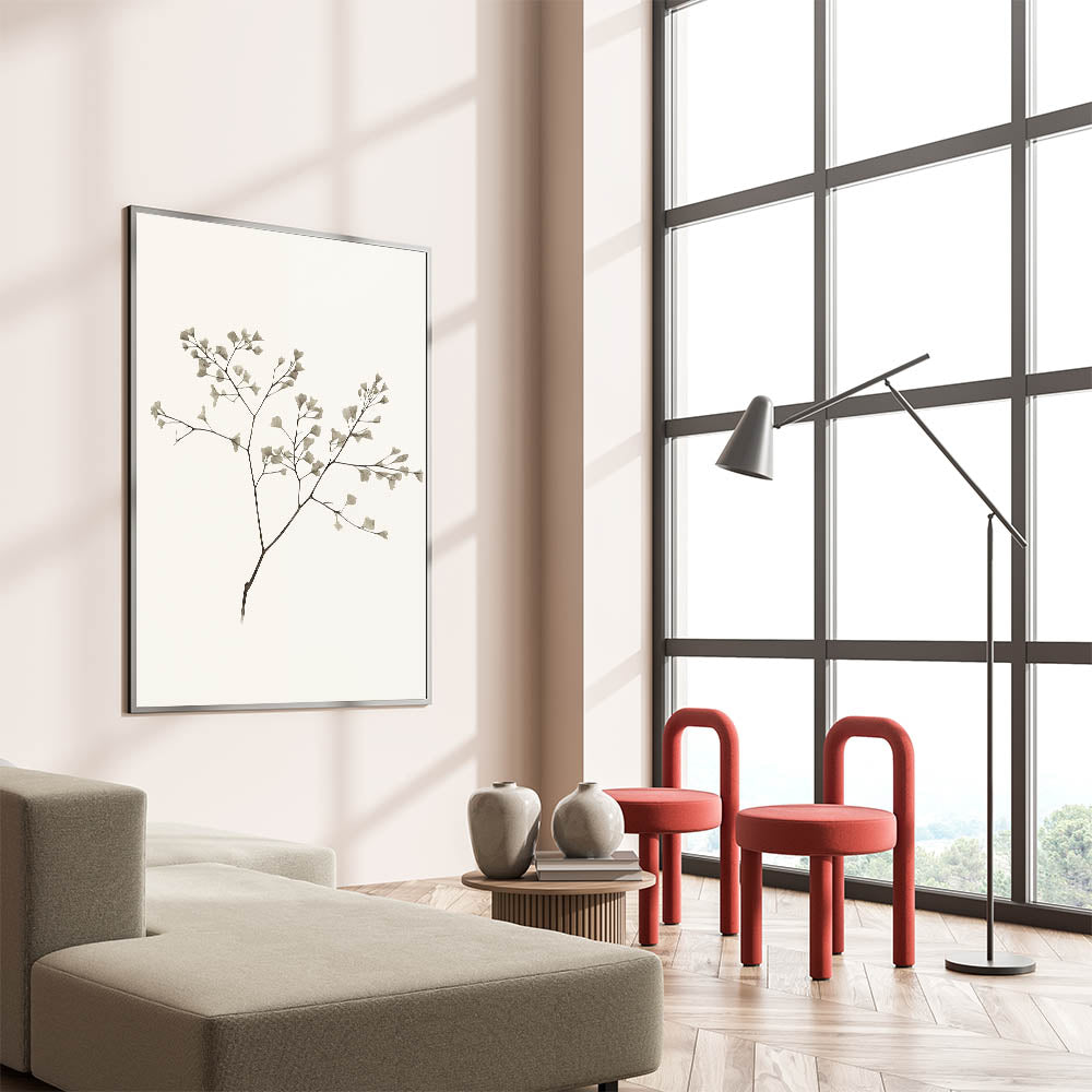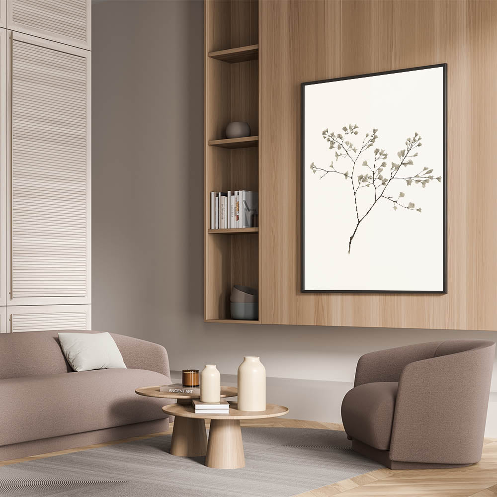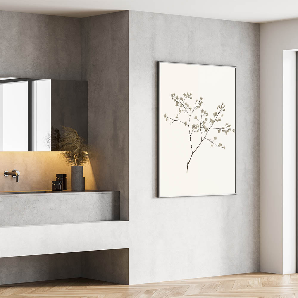 Embrace the serenity of nature with this elegant minimalist wall art featuring a delicate botanical design in soft neutral tones. The simple yet graceful representation of nature brings a sense of calm and balance to any room, making it an ideal addition to minimalist home decor. With its clean lines and minimalist aesthetic, this piece seamlessly integrates with contemporary and minimalist interiors.