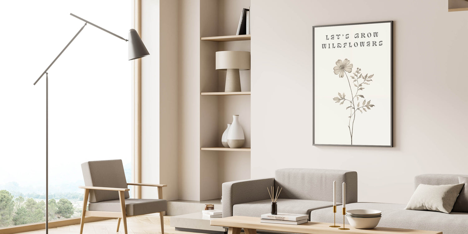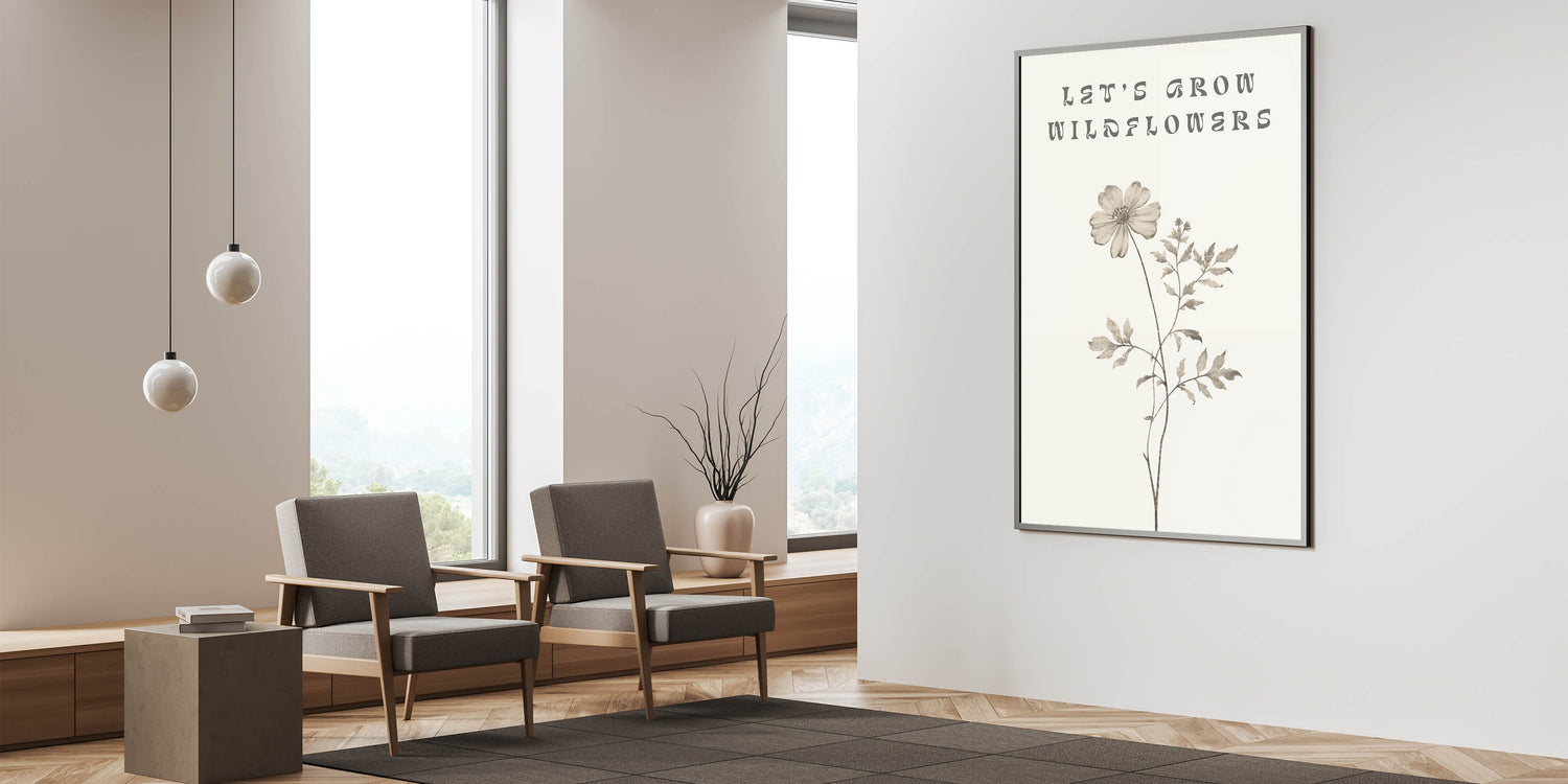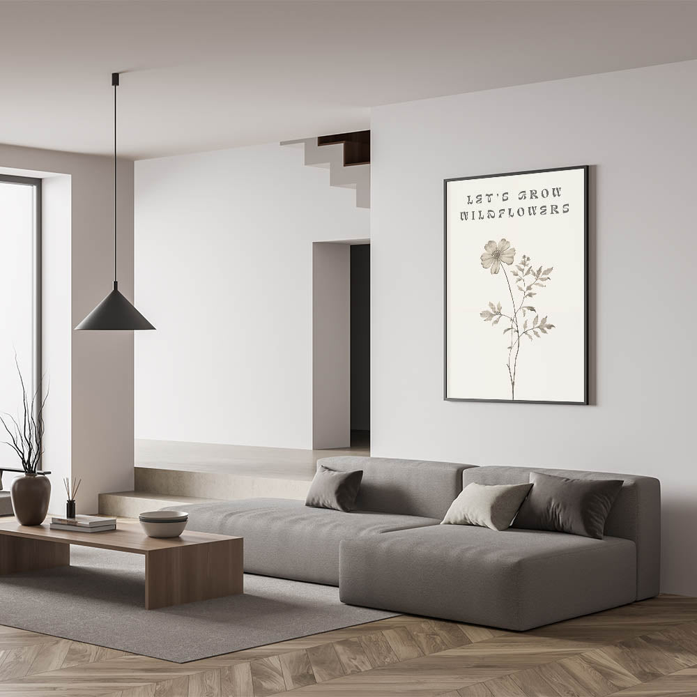 Embrace the beauty of nature with this Minimalist Botanical Art, featuring a delicate wildflower sketch alongside the uplifting phrase "Let's Grow Wildflowers." This piece combines simplicity and inspiration, making it a perfect addition to any modern or rustic interior.