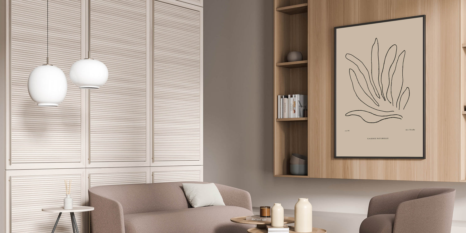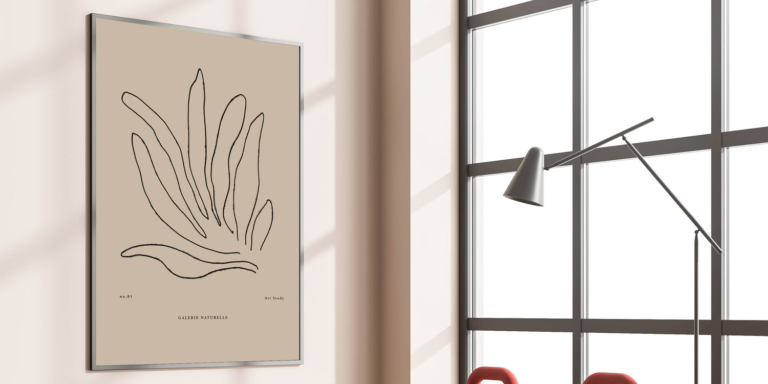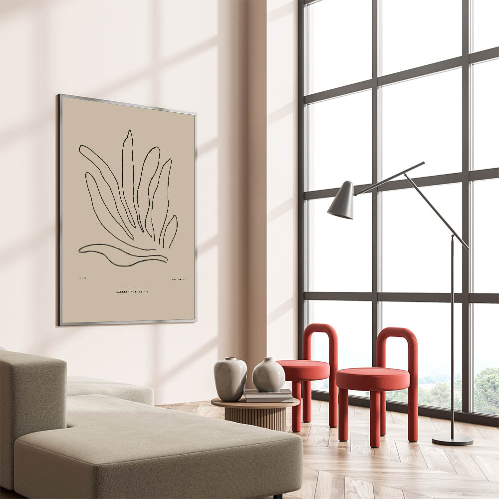 Elevate your space with this minimalist botanical art study. Featuring delicate black lines that form abstract plant leaves, this piece perfectly blends modern simplicity with nature-inspired elegance. The neutral beige background complements the fine linework, making it a versatile piece for contemporary homes and offices.