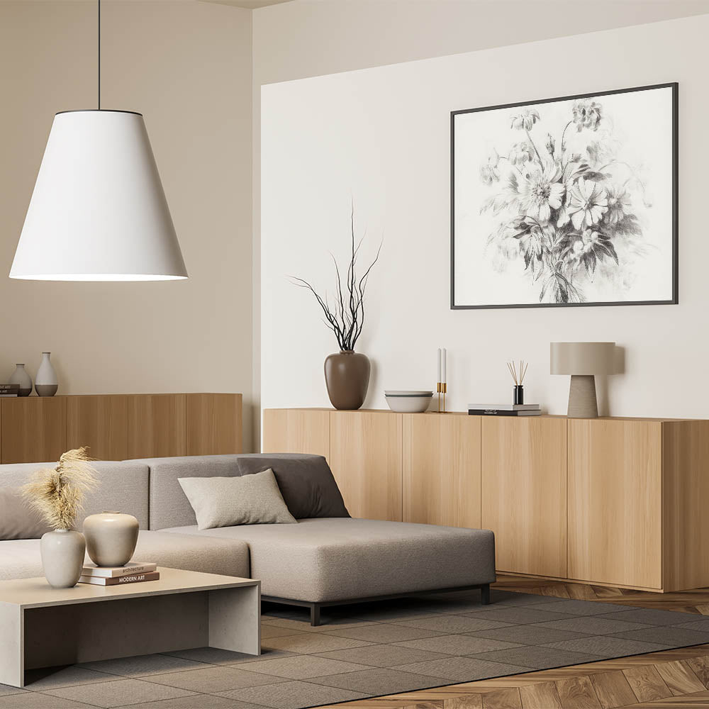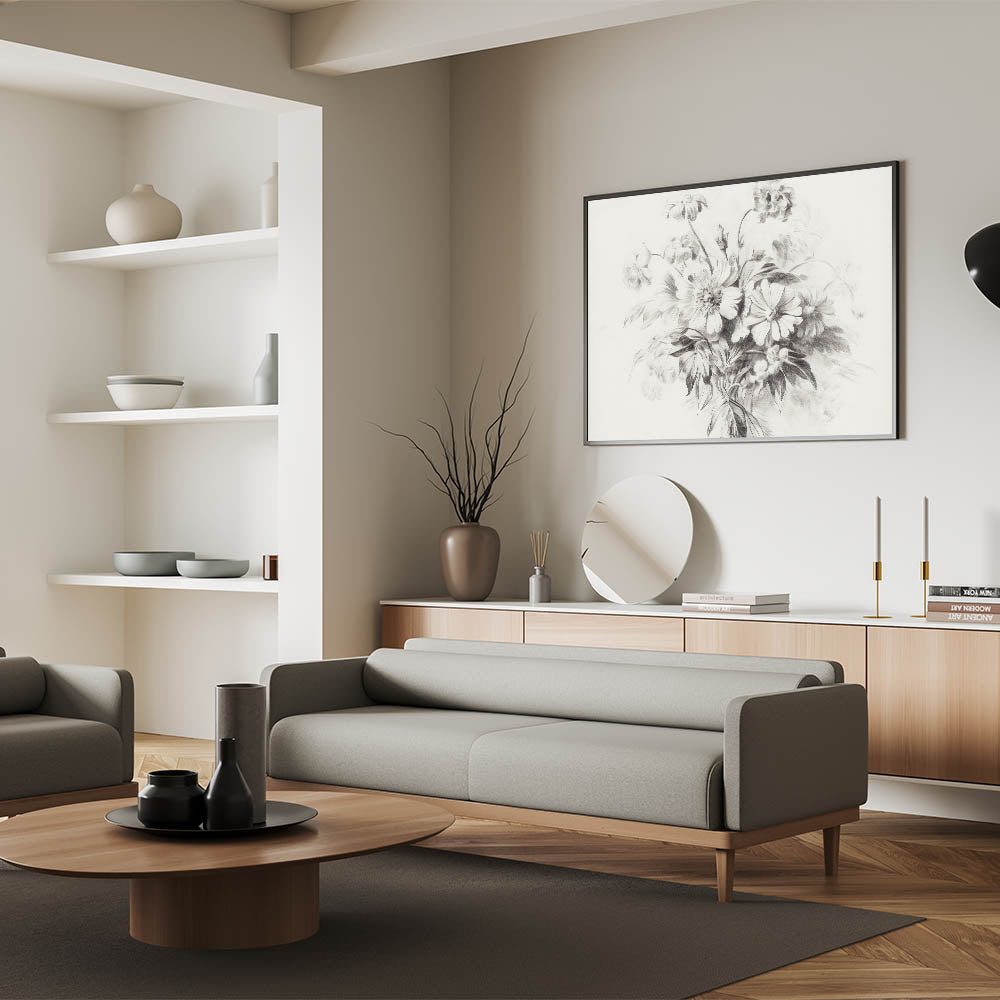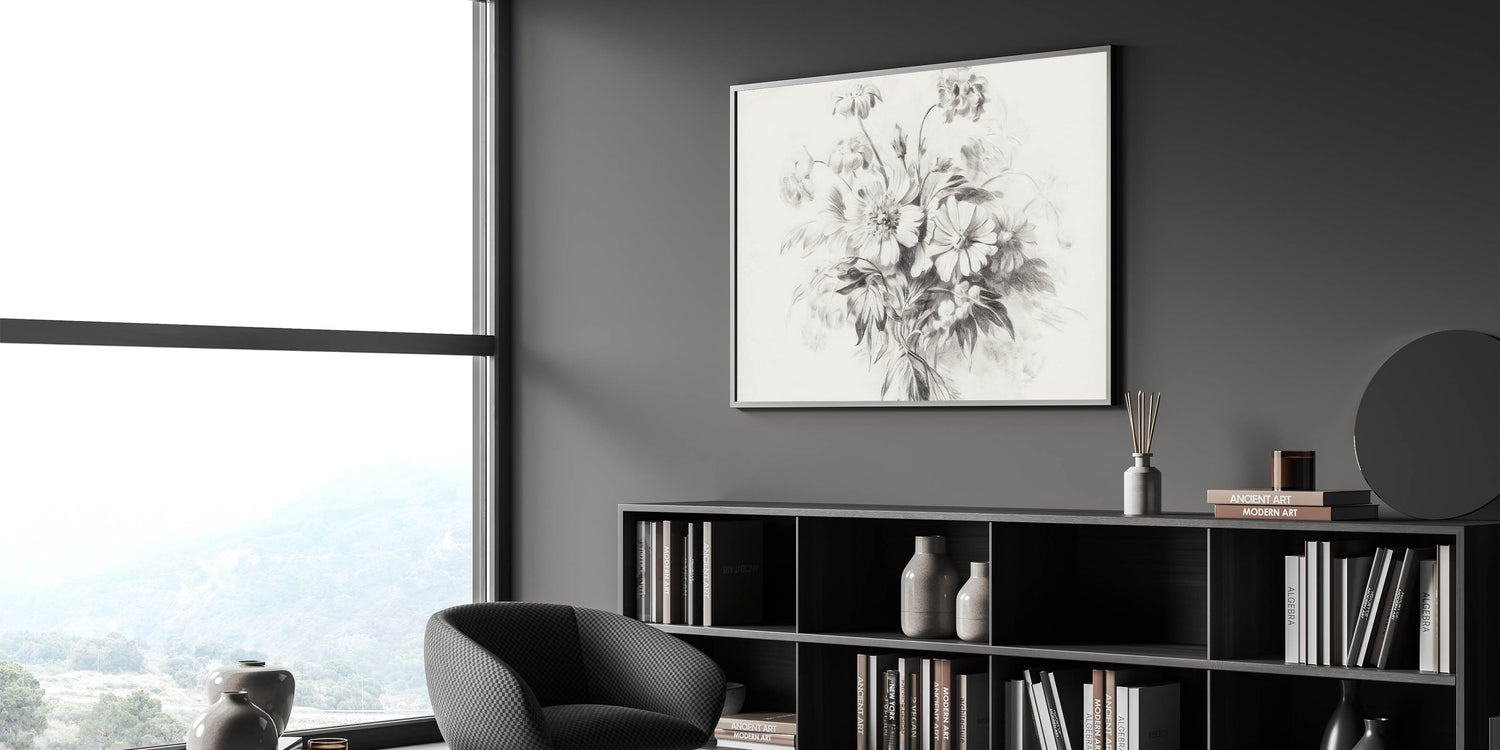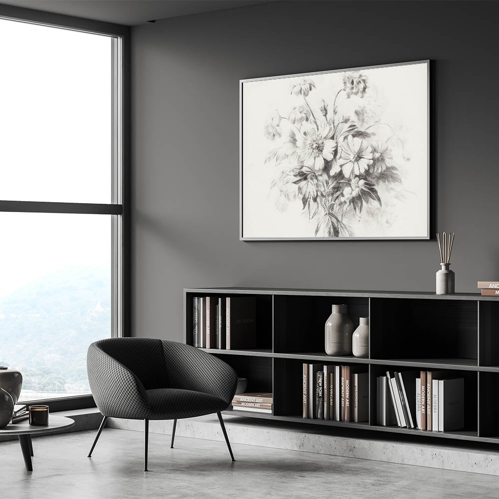 This floral sketch is the perfect balance of simplicity and beauty, offering a timeless addition to any modern or minimalist interior. The delicate lines and soft tones bring a peaceful, natural element to your decor.