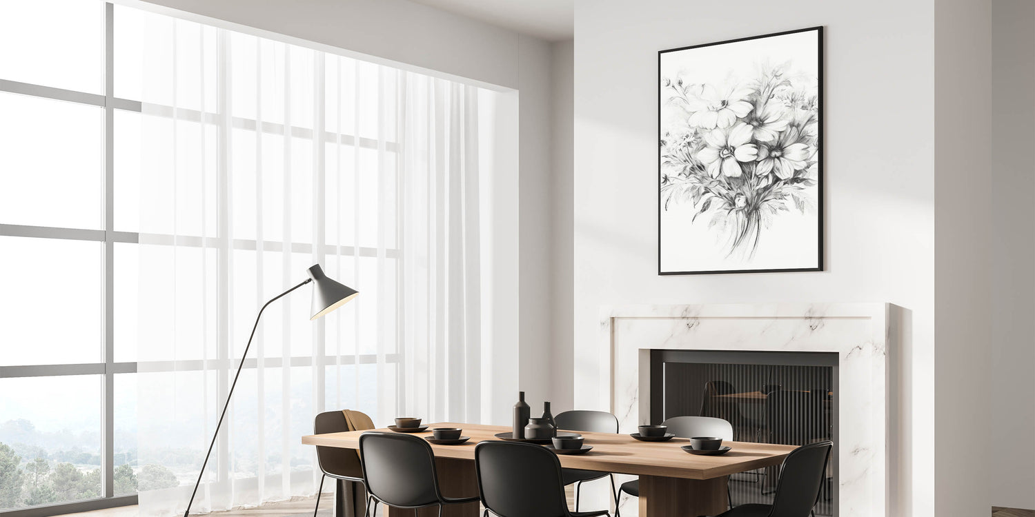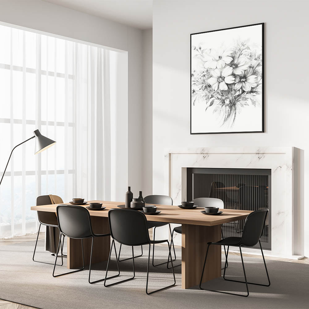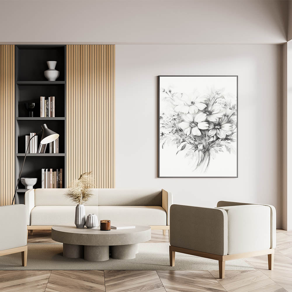 Brighten up your space with this beautiful minimalist floral sketch, featuring delicate flowers meticulously drawn in soft pencil lines. The intricate details and gentle shading capture the essence of nature's beauty, making this artwork ideal for modern and minimalist home decor. Perfect for living rooms, bedrooms, or offices, this floral sketch brings a serene and elegant touch to any room.