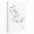 - Features a minimalist pencil sketch of a branch with delicate leaves