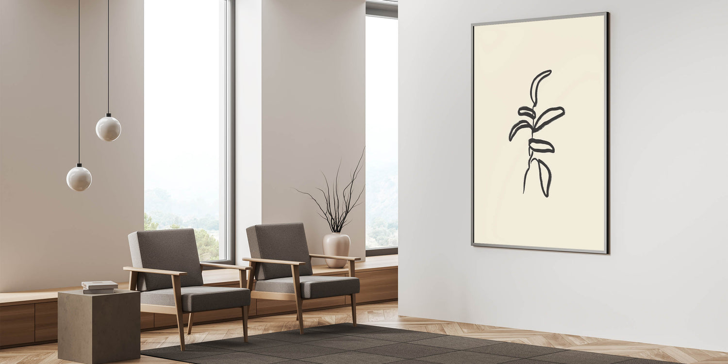 This minimalist botanical artwork is a beautiful blend of simplicity and sophistication, making it a versatile addition to any room. Whether you're decorating a contemporary space or looking to add a calming influence to your home, this piece is an excellent choice.