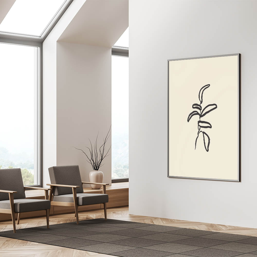 Introduce a touch of nature to your space with this minimalist plant line art. The design features a simple, yet striking black line drawing of a plant on a soft beige background. The clean and elegant composition makes it an ideal choice for those who appreciate modern, understated decor with a botanical twist.