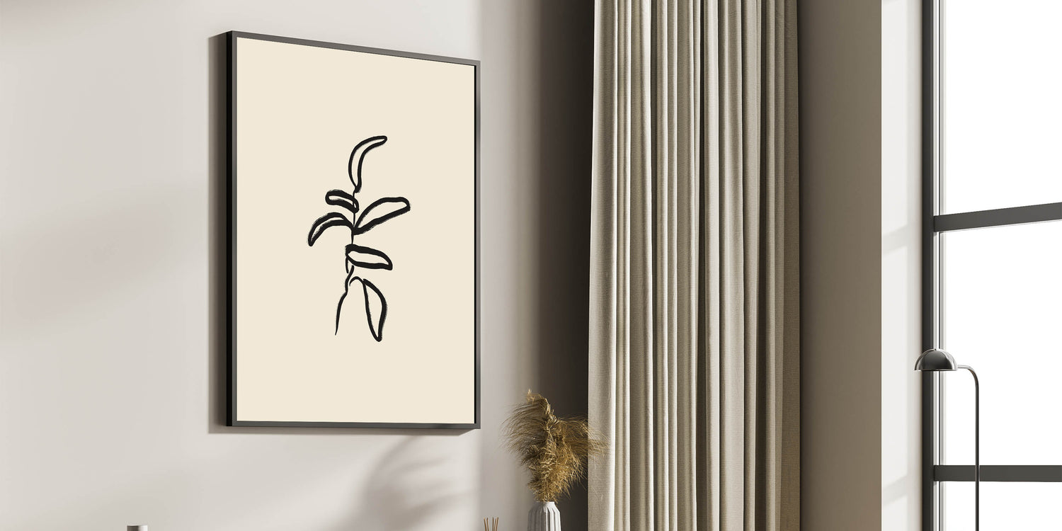 Minimalist Wall Art – Black Line Plant Drawing on Beige Canvas