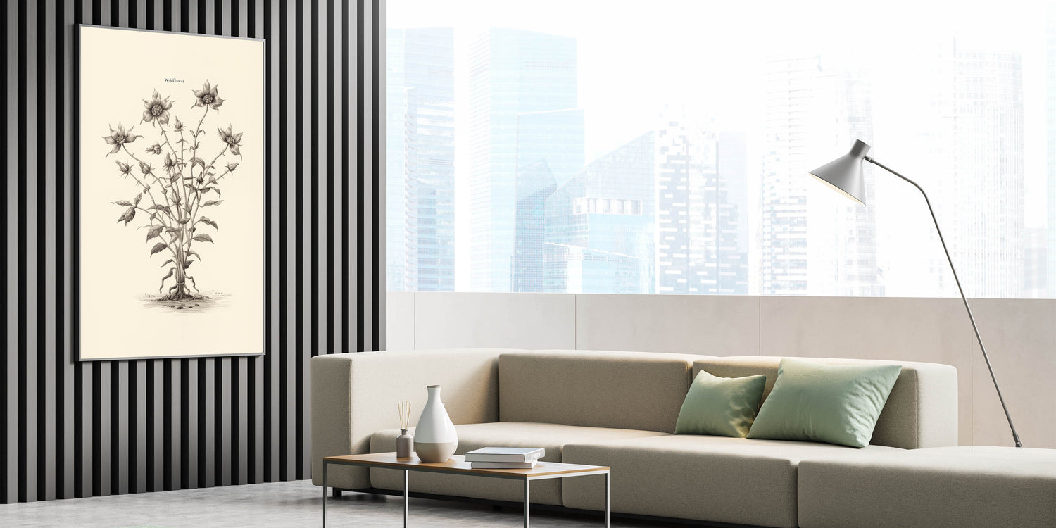 The artwork’s clean lines and soft detailing make it a perfect fit for modern minimalist art lovers. Whether used as part of a gallery wall or as a standalone piece, this elegant wildflower sketch offers timeless beauty and subtle sophistication.