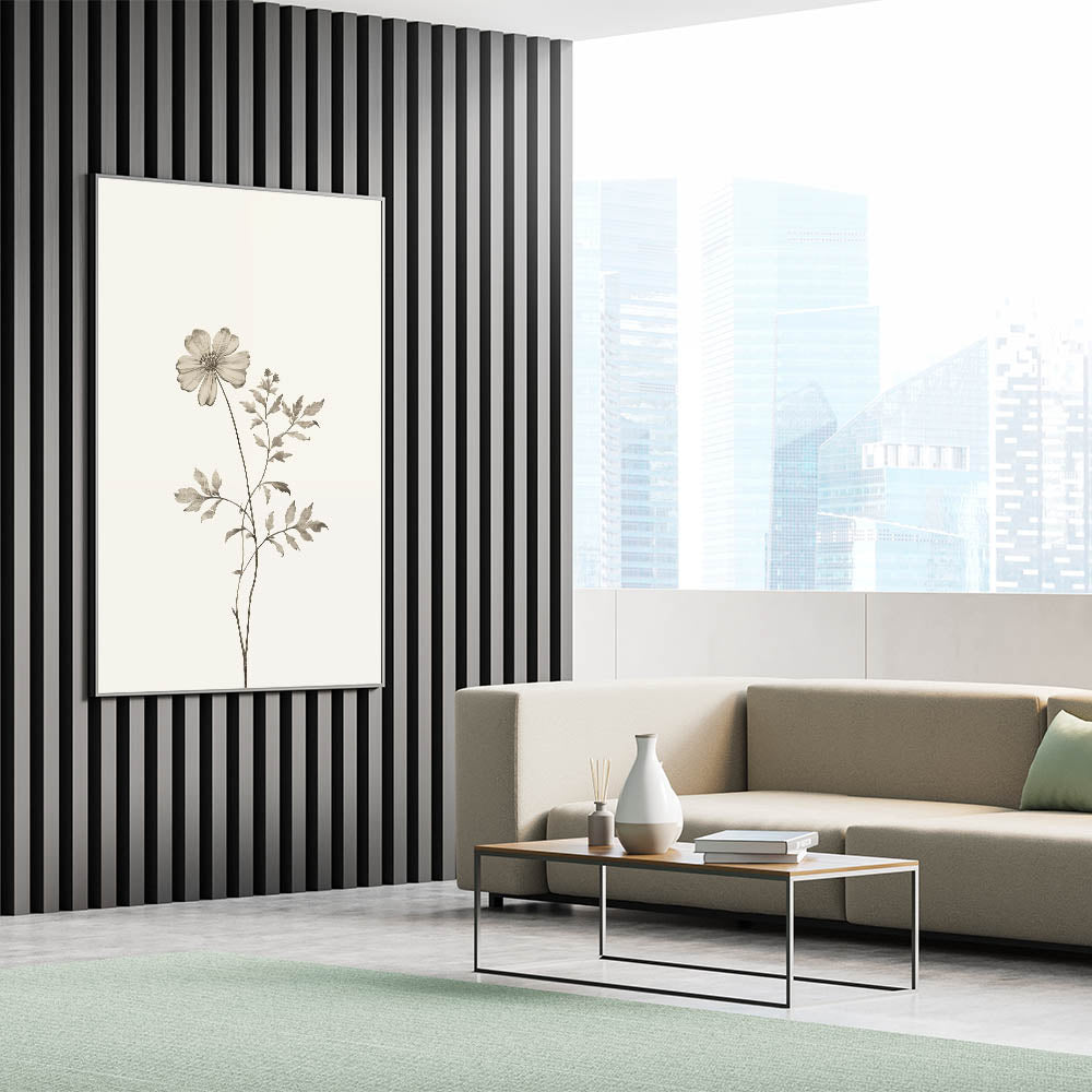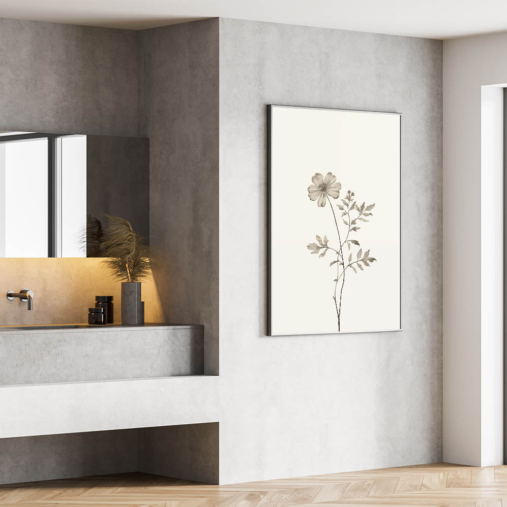 This minimalist wall art features a delicate botanical flower sketch, offering a serene and timeless addition to any modern interior. The soft, natural tones and finely detailed flower and leaf illustration create an elegant focal point, ideal for enhancing minimalist home decor. Its simplicity and grace make it perfect for those who appreciate clean lines and a subtle aesthetic, bringing the beauty of nature into any room.