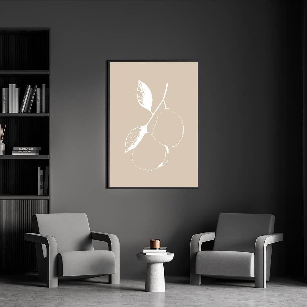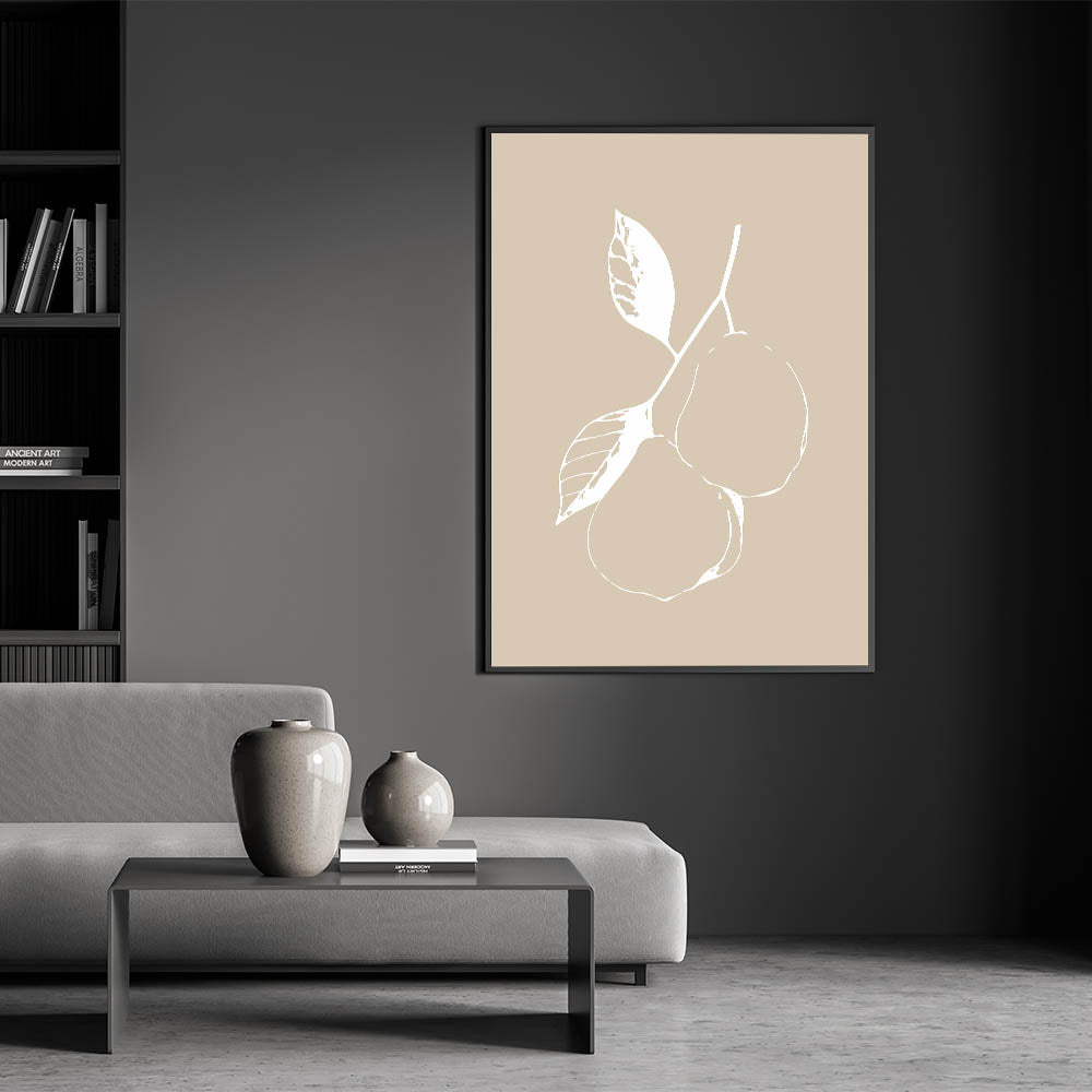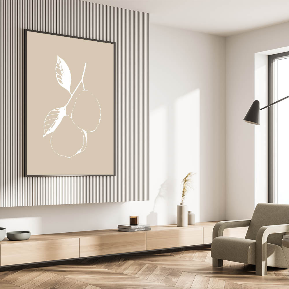 - Minimalist home decor featuring a sophisticated white pear design on a soft beige background.
