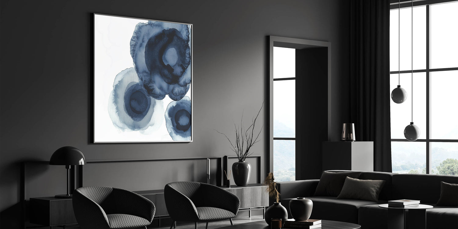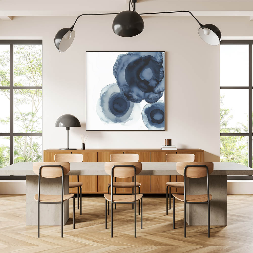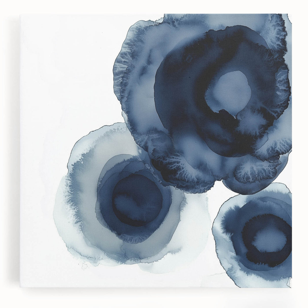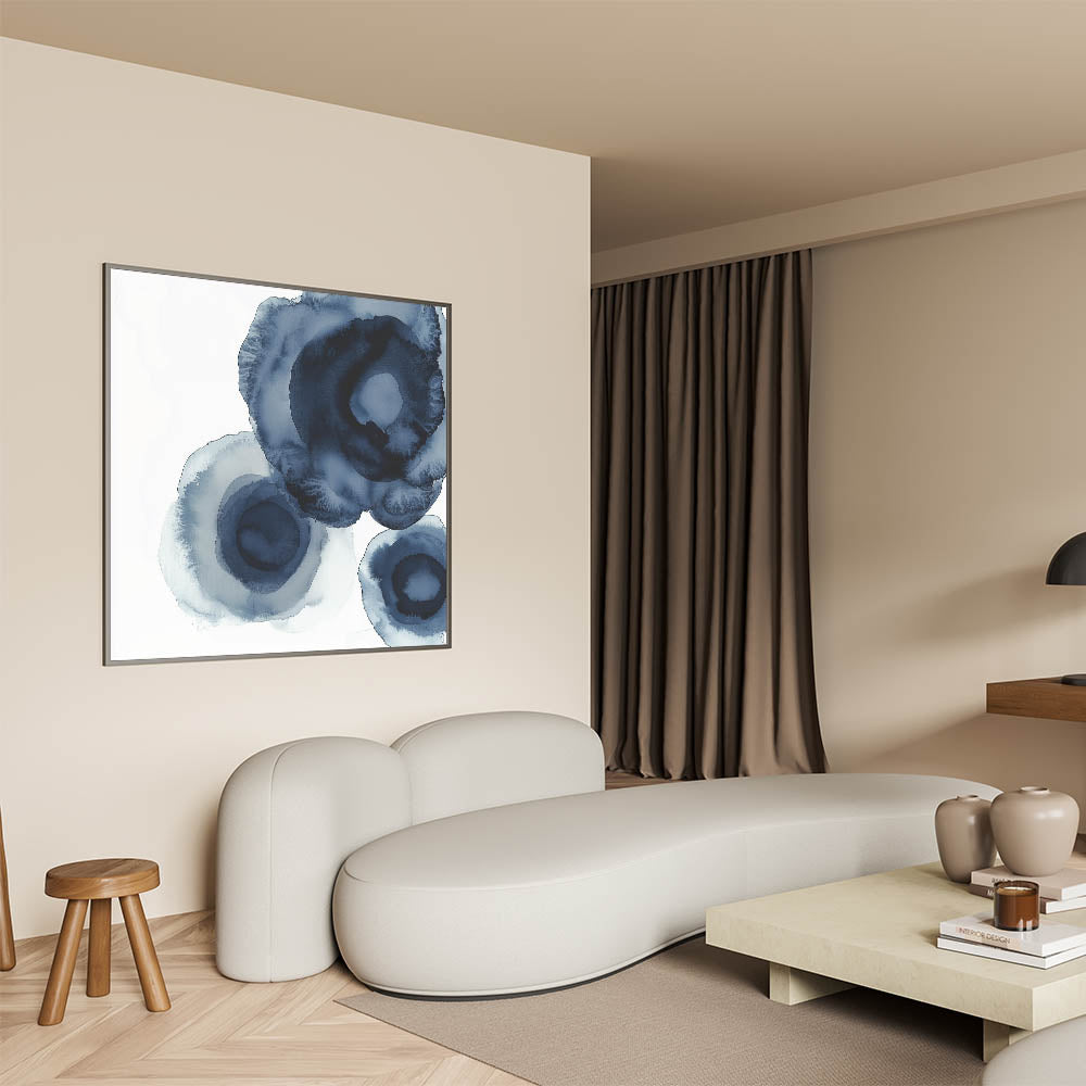 Bring calm and clarity into your space with this modern abstract wall art featuring a soft, inky floral motif. Blending fluid navy tones with gentle gradients of blue and white, this piece captures a sense of quiet movement. A perfect choice for serene, minimalist interiors or design-forward gallery walls.