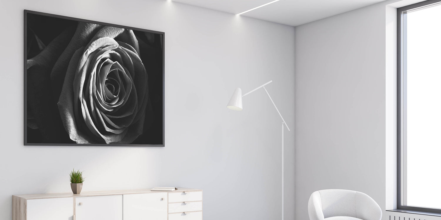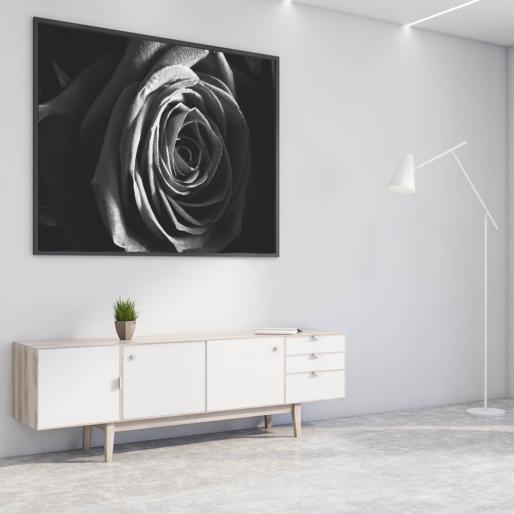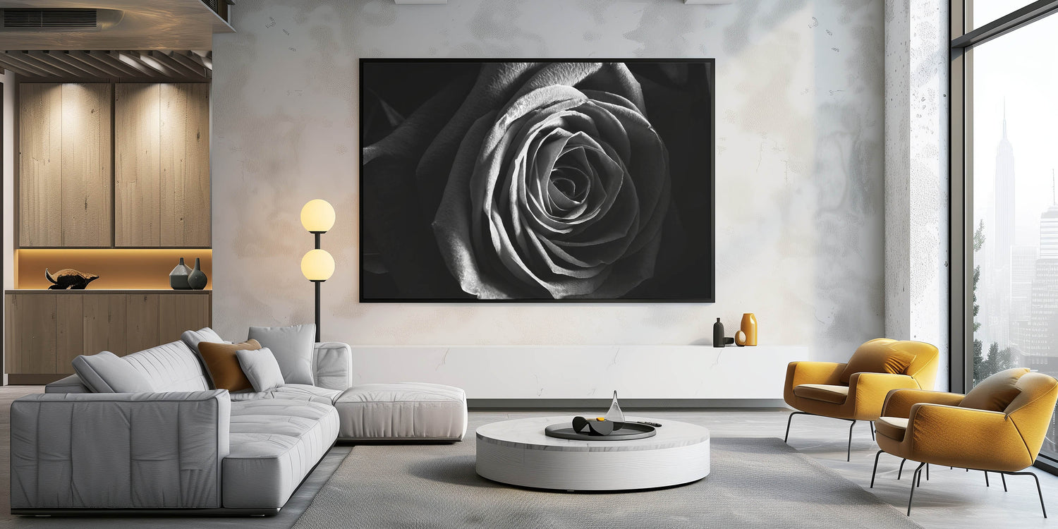 Modern Floral Wall Decor - Black and White Rose in Close-Up