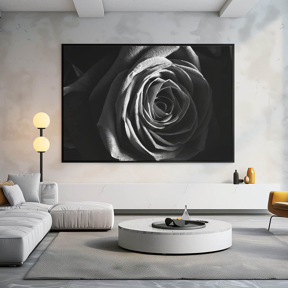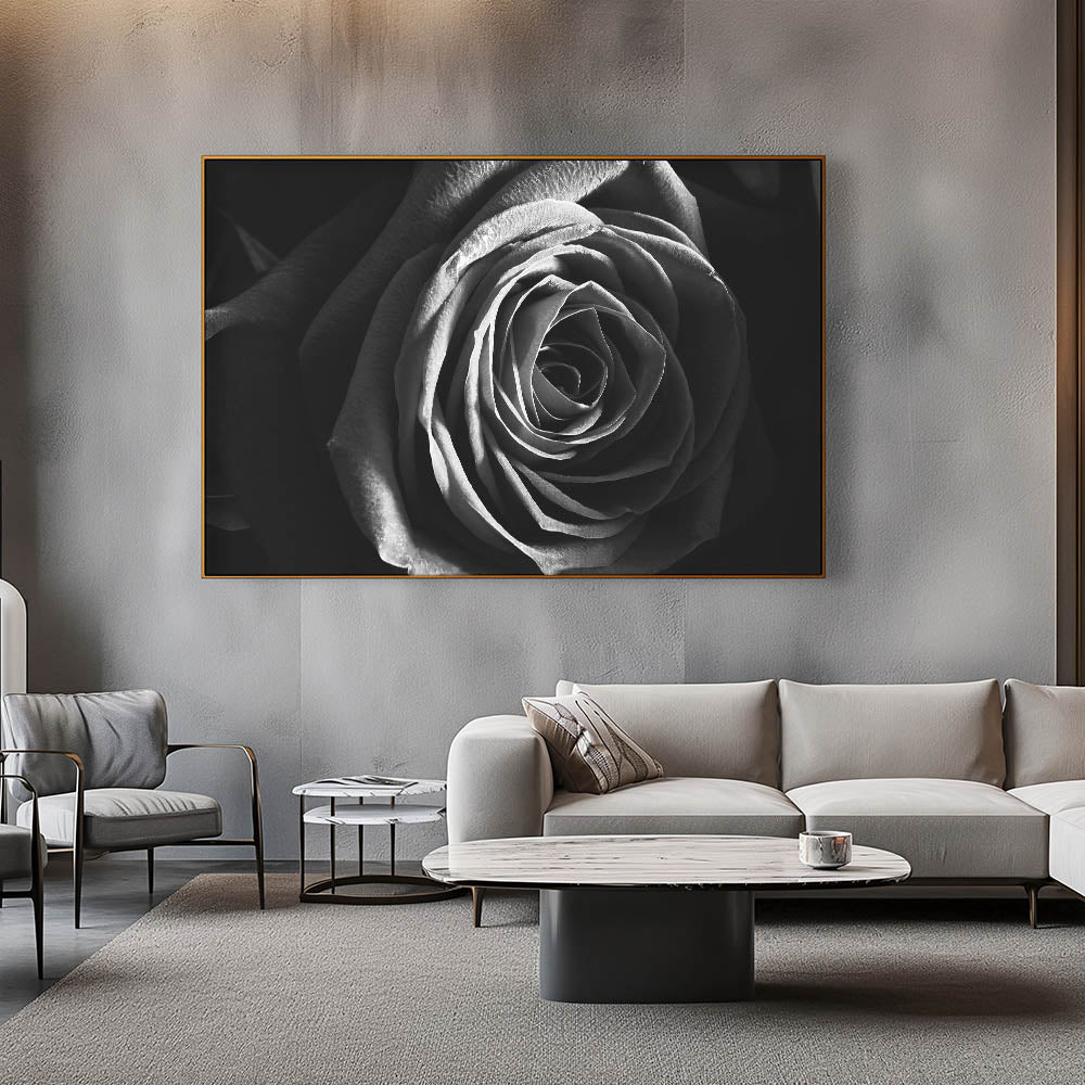 Embrace the elegance of monochrome with this captivating piece from our Abstract Florals Collection. This black-and-white close-up of a rose captures the intricate details of each petal, offering a timeless and dramatic look. Perfect for modern and minimalist spaces, this modern floral wall decor creates a bold statement while adding a touch of sophistication.