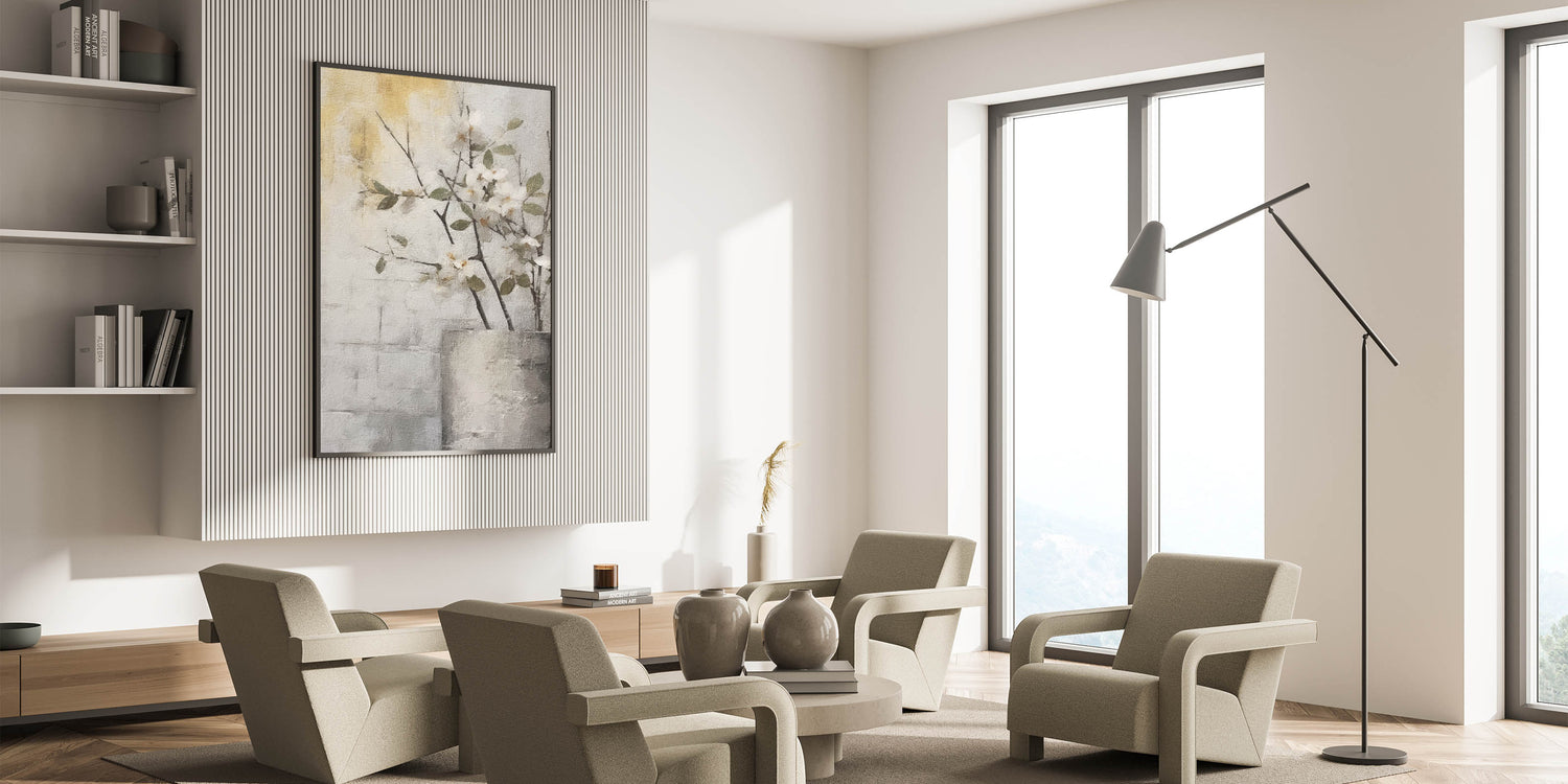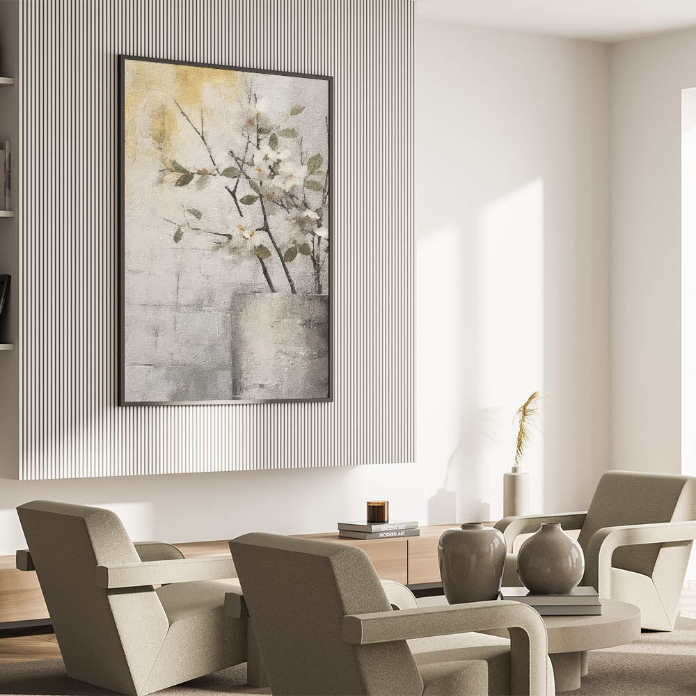 This contemporary floral wall art is ideal for those who appreciate understated elegance. It enhances living rooms, bedrooms, or office spaces with a calm, refined aesthetic.