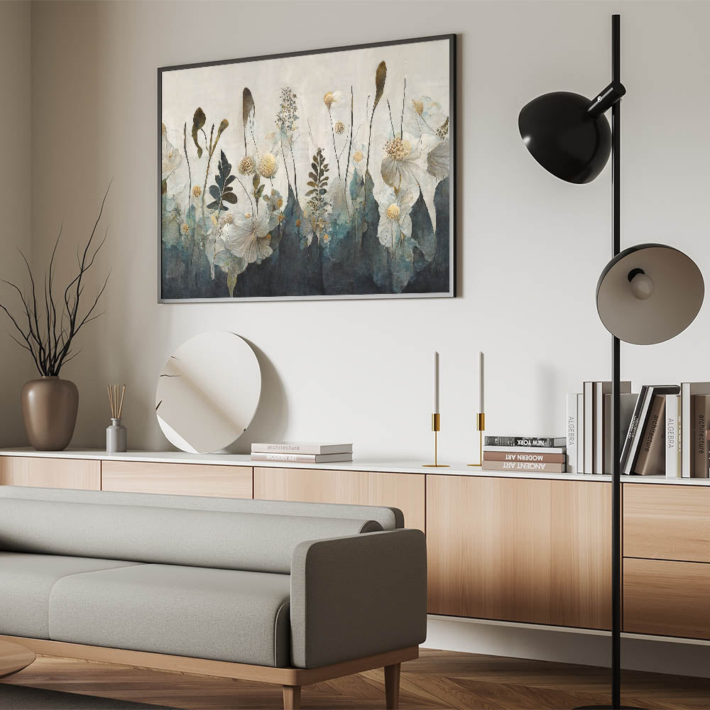 Let this "Contemporary Flower Print" transform your walls into a sanctuary of natural beauty and tranquility. Perfect for a living room, bedroom, or study, this piece invites you to experience the serenity and sophistication of a midnight garden in full bloom.