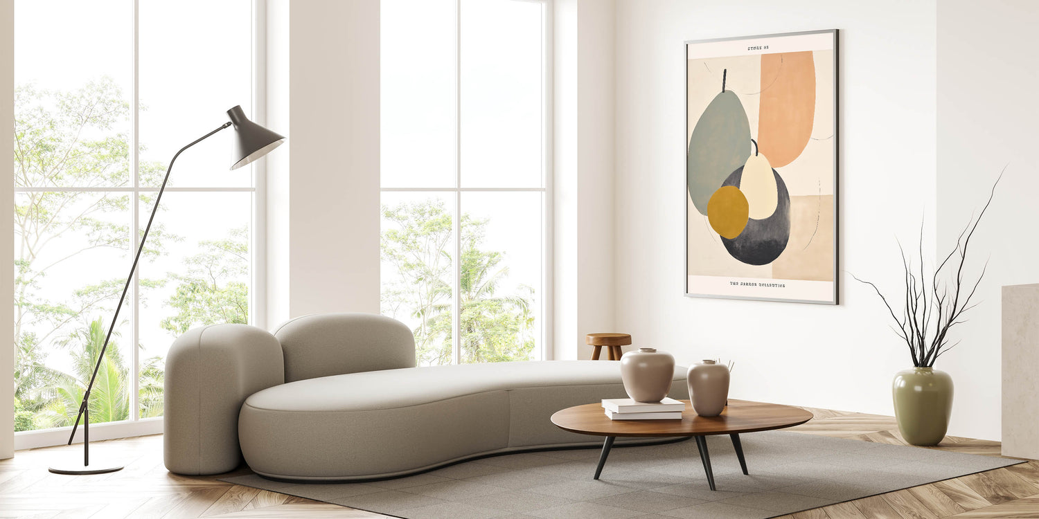 Introduce a fresh and modern aesthetic to your living space with this captivating piece from "The Garden Collection." This minimalist abstract geometric art print features a harmonious blend of organic shapes and muted tones, evoking a sense of calm and natural beauty. Perfect for contemporary and modern interiors, this artwork adds a touch of elegance and sophistication to any room.