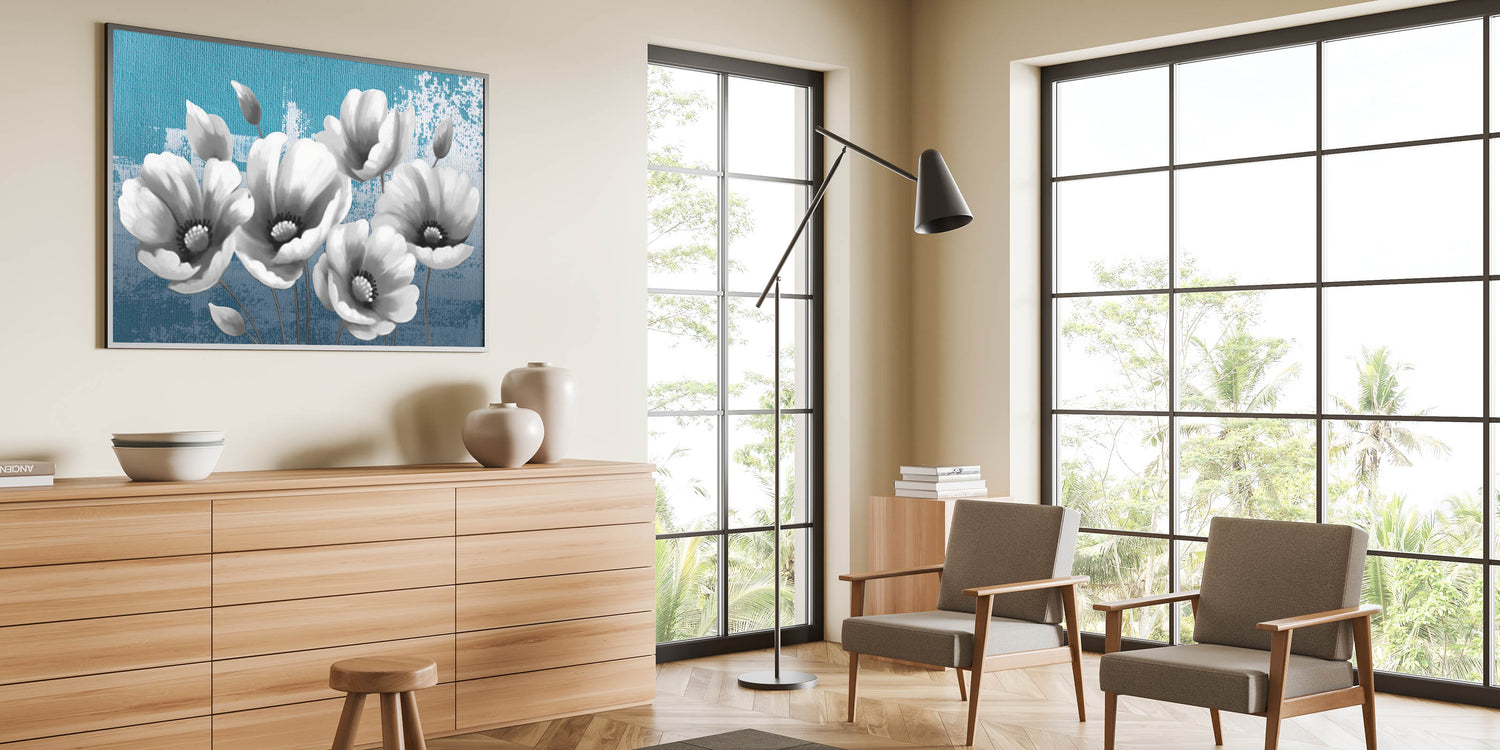 This monochrome floral art piece is more than just decor; it’s a statement of style and sophistication. Whether displayed in a living room, bedroom, or office, it adds a refined and artistic touch to your environment.