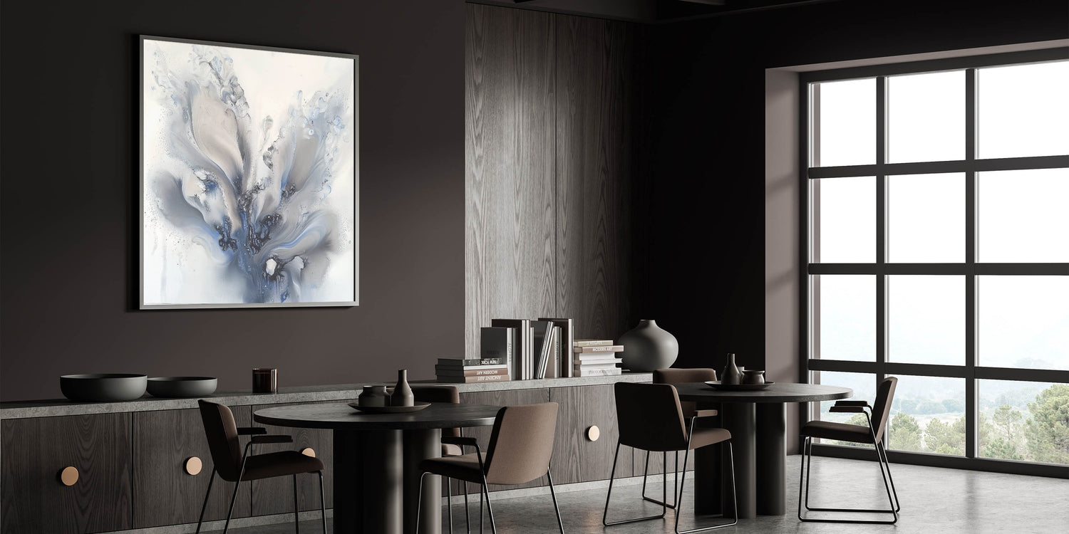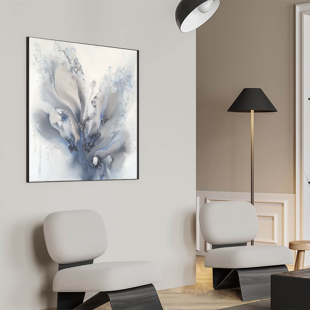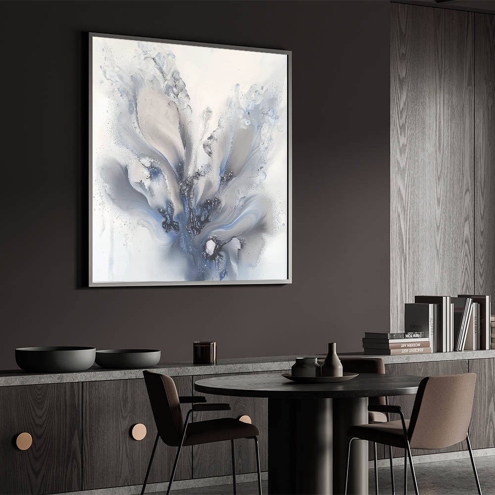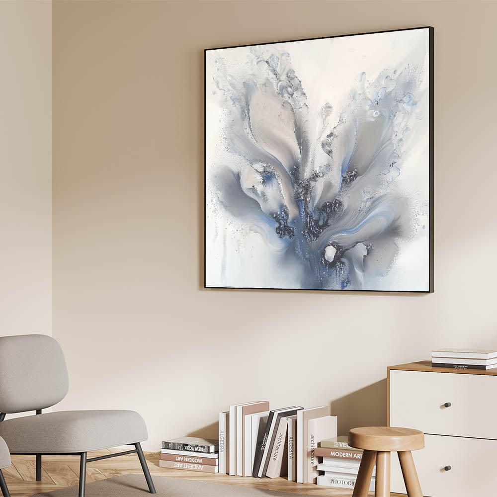 Elevate your space with the ethereal beauty of Mystic Bloom Abstract Floral Wall Art. This striking piece blends soft, flowing forms with subtle tones of blue and gray, creating a mesmerizing visual effect that exudes modern elegance. Perfect for minimalist and contemporary interiors, it evokes a sense of calm and sophistication, making it ideal for living spaces, offices, or bedrooms.