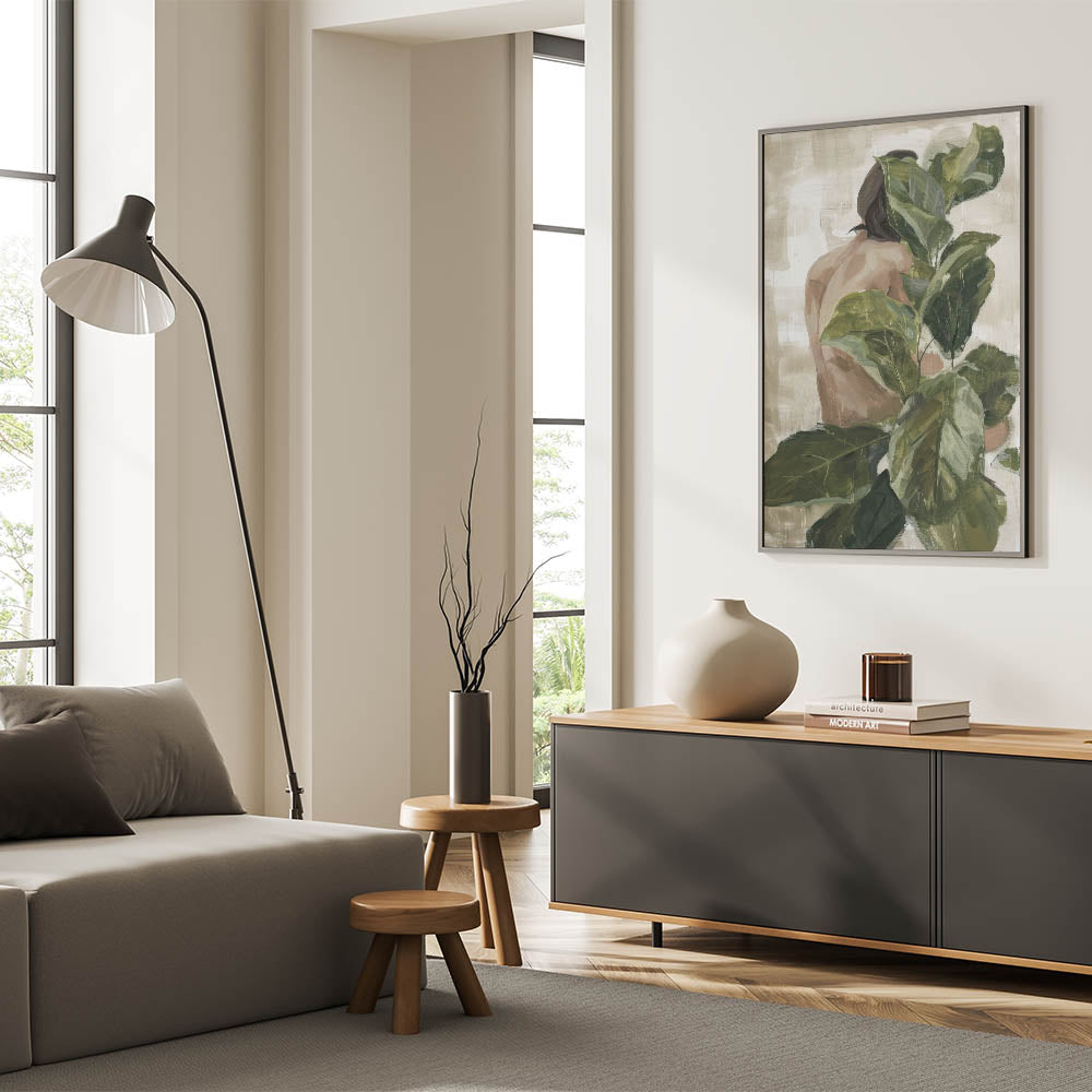 This creative figurative decor is perfect for adding a calming and organic touch to any interior. Its earthy palette and sophisticated design make it a timeless addition to your art collection.
