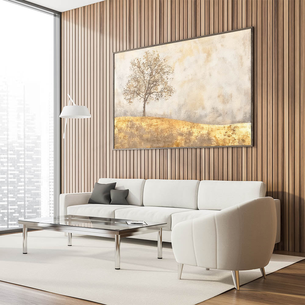 Rustic Golden Tree Landscape - Minimalist Abstract Canvas Wall Art