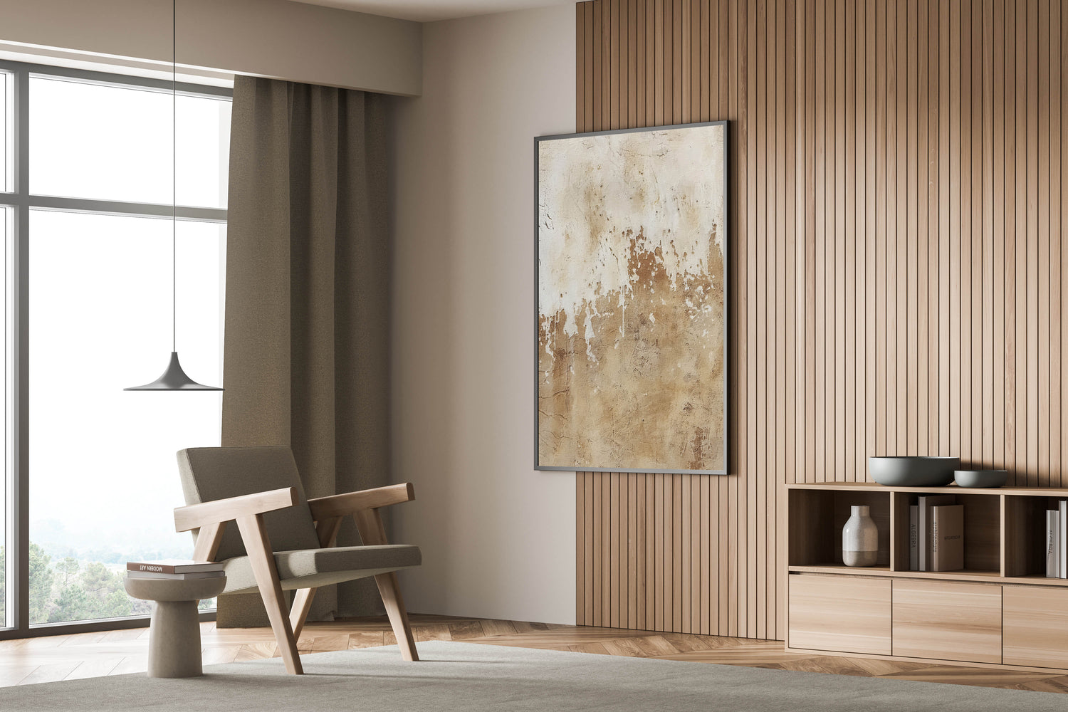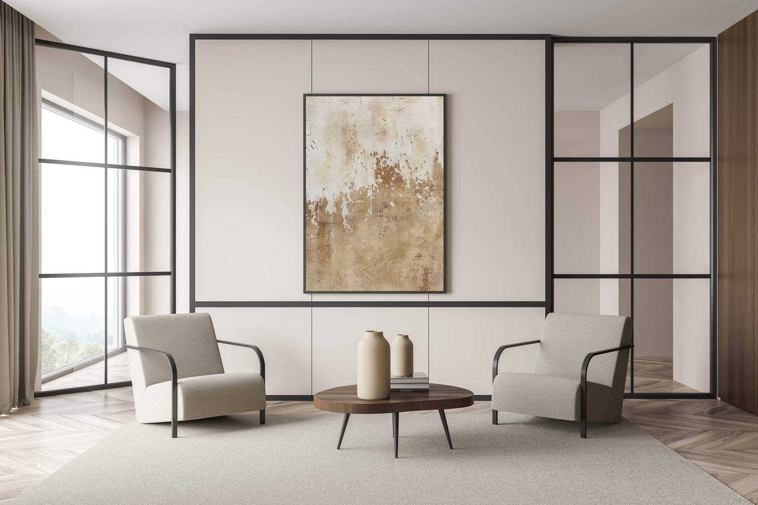 This Rustic Warmth abstract line art features a beautifully textured design with soft brush strokes in earthy tones. The artwork combines shades of beige, brown, and cream, creating a natural and organic visual experience. The abstract brush strokes give a rustic feel, reminiscent of weathered surfaces and natural landscapes, making it an ideal piece for those who appreciate warm, earthy decor.