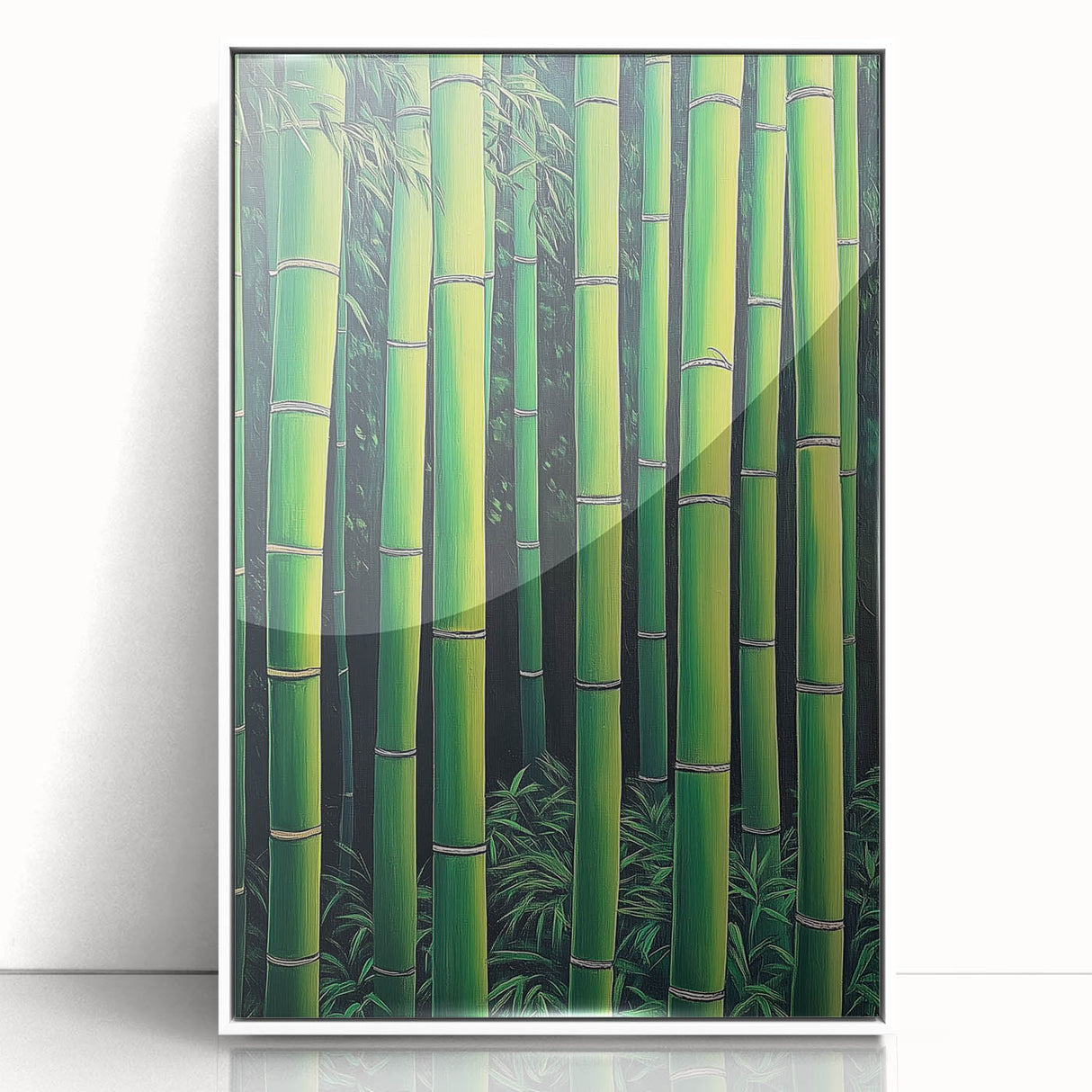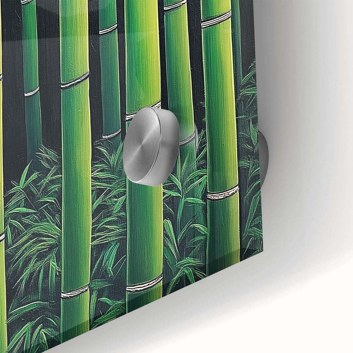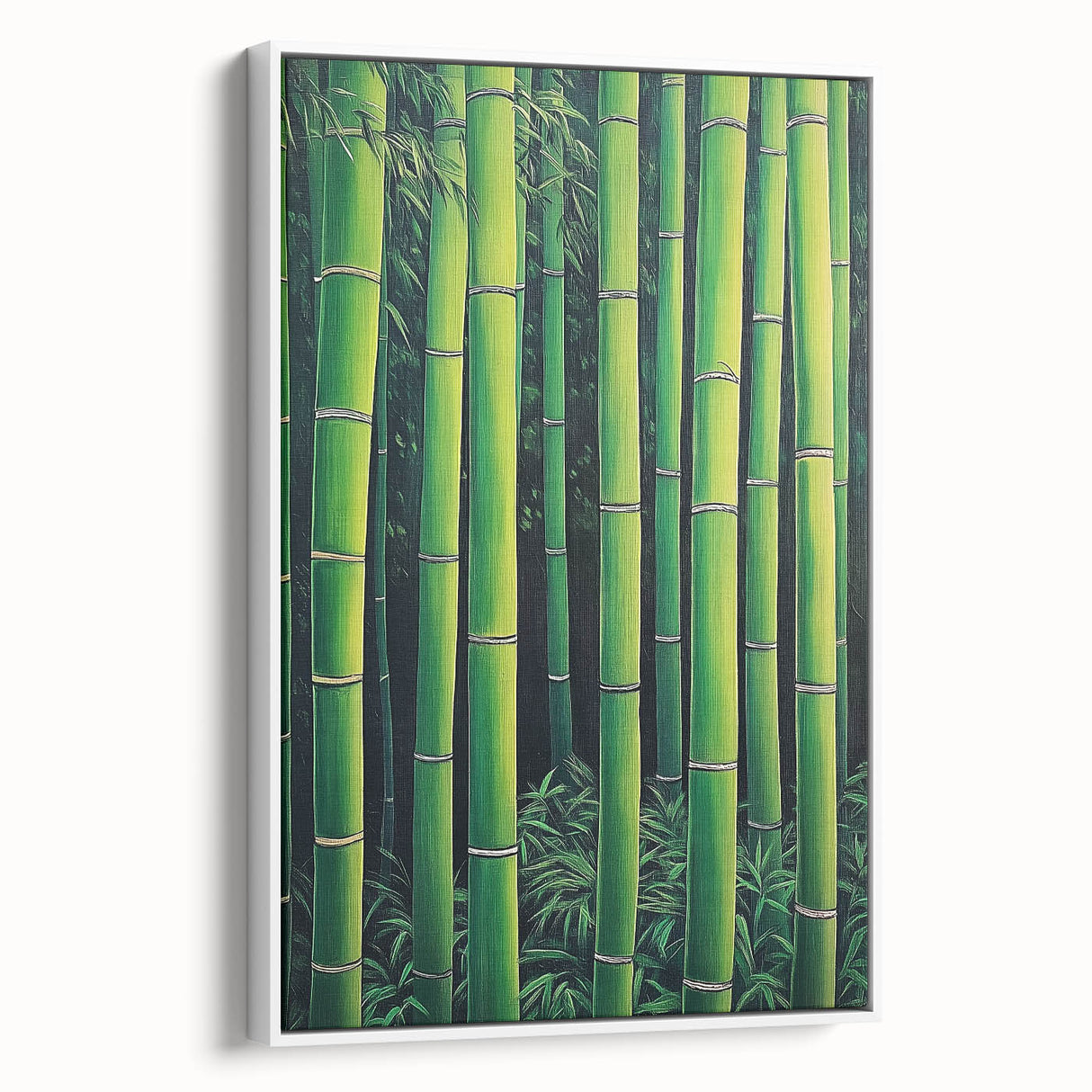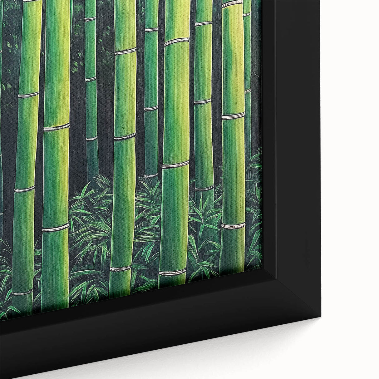 Immerse yourself in the tranquil beauty of nature with this stunning abstract floral artwork, featuring a serene bamboo grove. The vibrant green bamboo stalks, set against a dark forest background, evoke a sense of calm and balance, making this piece ideal for modern, minimalist, or nature-inspired interiors.