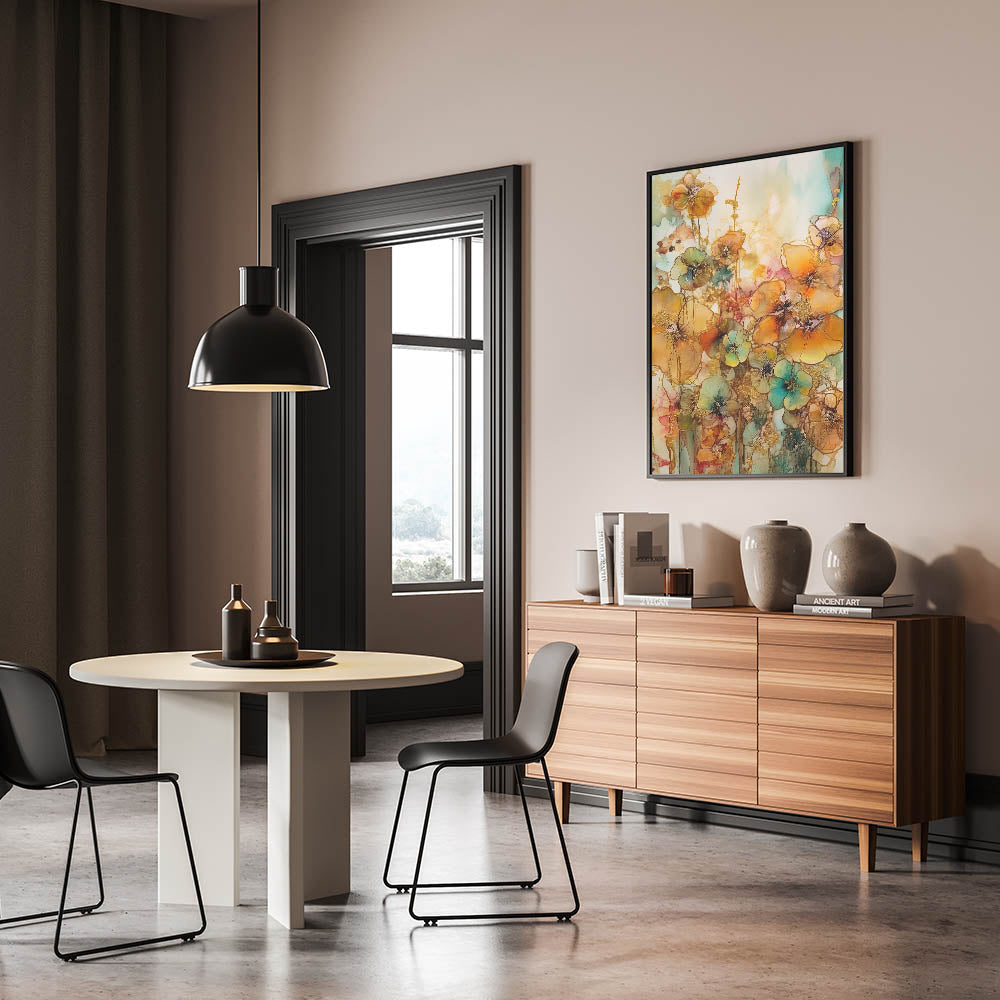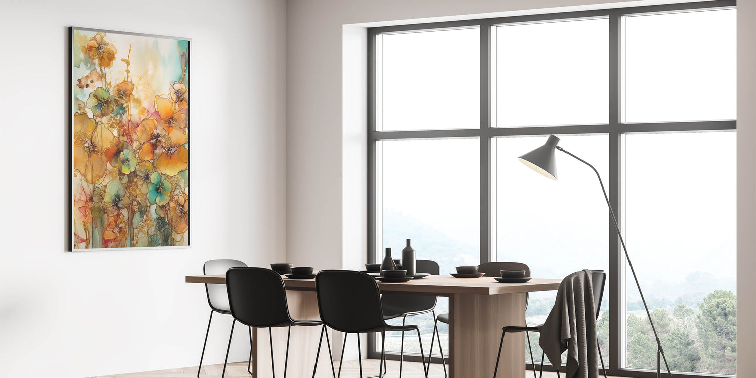 This modern floral abstract is designed for those who appreciate bold, lively decor. The dynamic color palette and detailed floral design make it a stunning focal point, whether displayed as a standalone piece or as part of a gallery wall. Elevate your interior with this artistic botanical decor, crafted to inspire and delight.