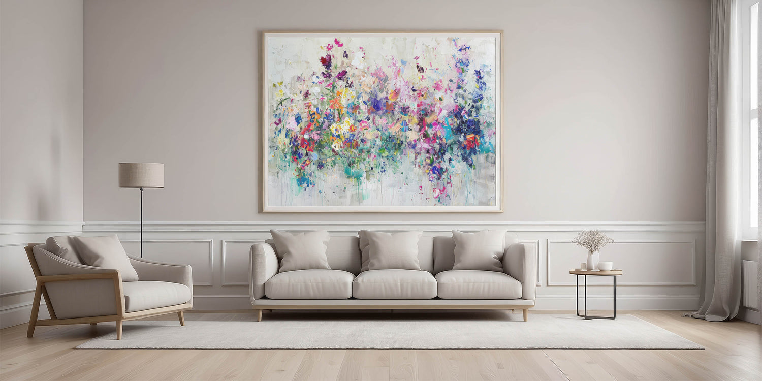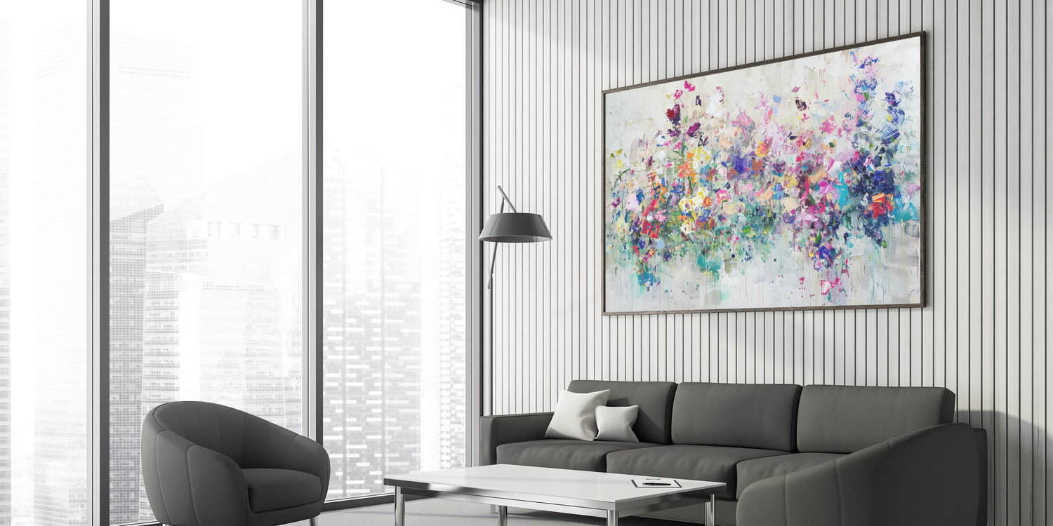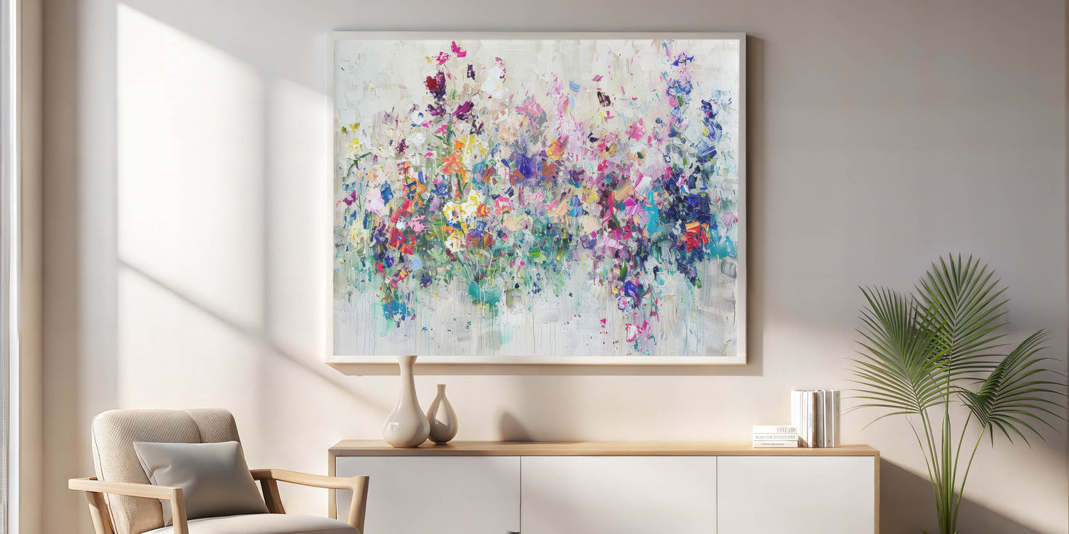 This Dynamic Floral Splatter Canvas brings an energetic and lively vibe, making it a perfect centerpiece for your living room, bedroom, or office. Its bold, textured design makes it an excellent gift for art enthusiasts or anyone looking to add a pop of color to their space.