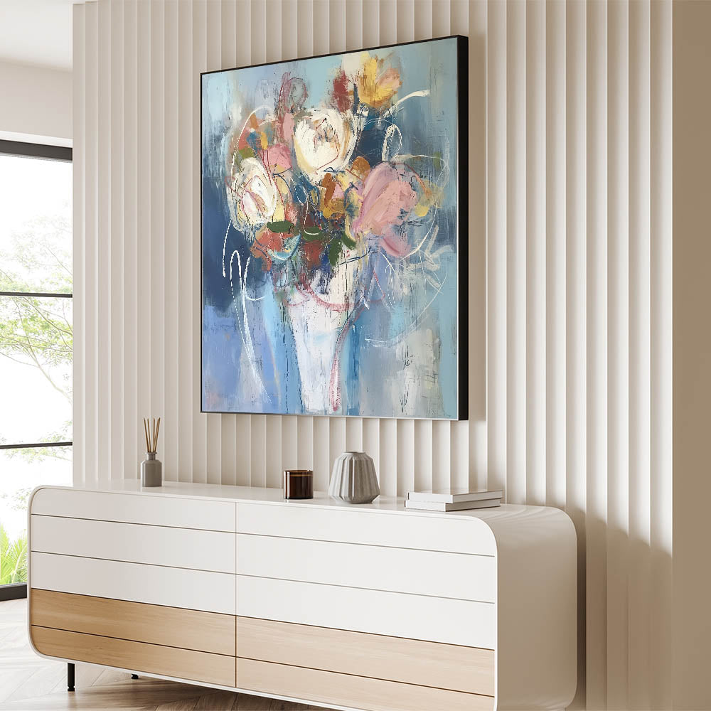 Celebrate the beauty of abstract art with this modern floral wall décor, ideal for creating a lively and welcoming atmosphere. Whether as a gift or a statement piece for your own space, Vibrant Harmony adds charm and sophistication to any room.