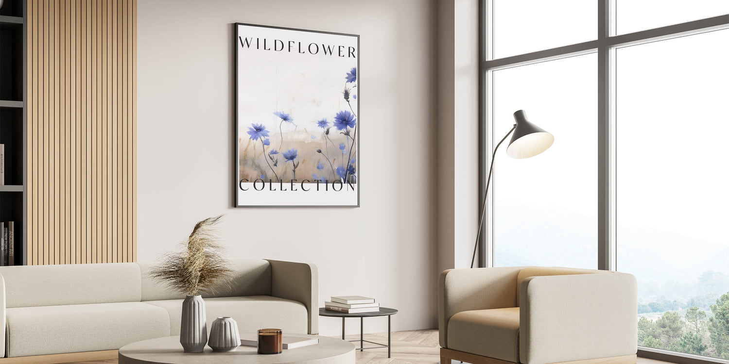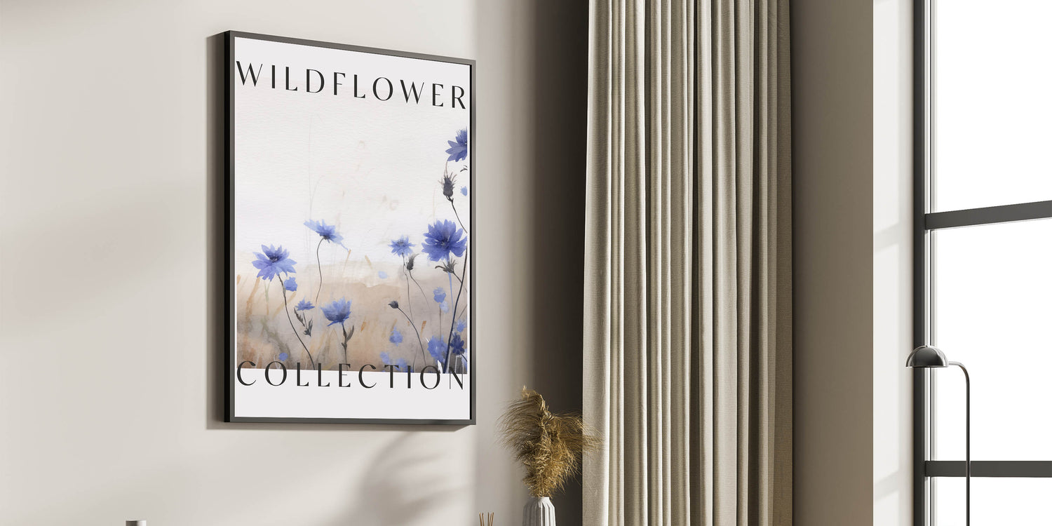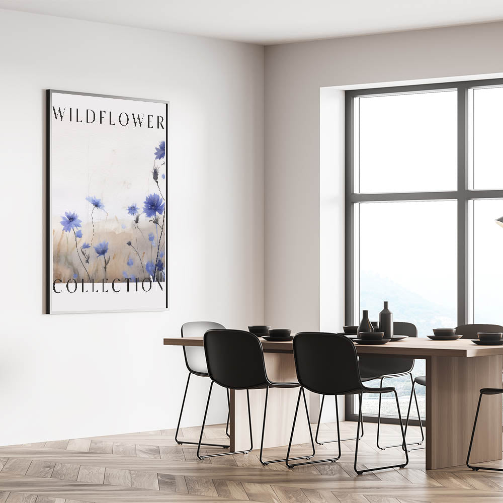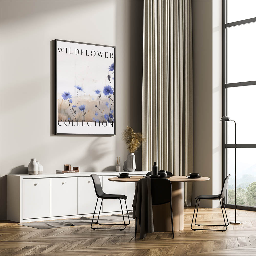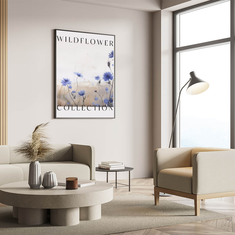 Bring the beauty of nature into your home with this stunning piece from the "Wildflower Collection." Featuring delicate blue wildflowers set against a soft, neutral background, this artwork captures the tranquility and elegance of nature in a minimalist style. The soft watercolor effect and calming color palette make it ideal for modern interiors, adding a touch of serenity and sophistication to your living room, bedroom, or office.