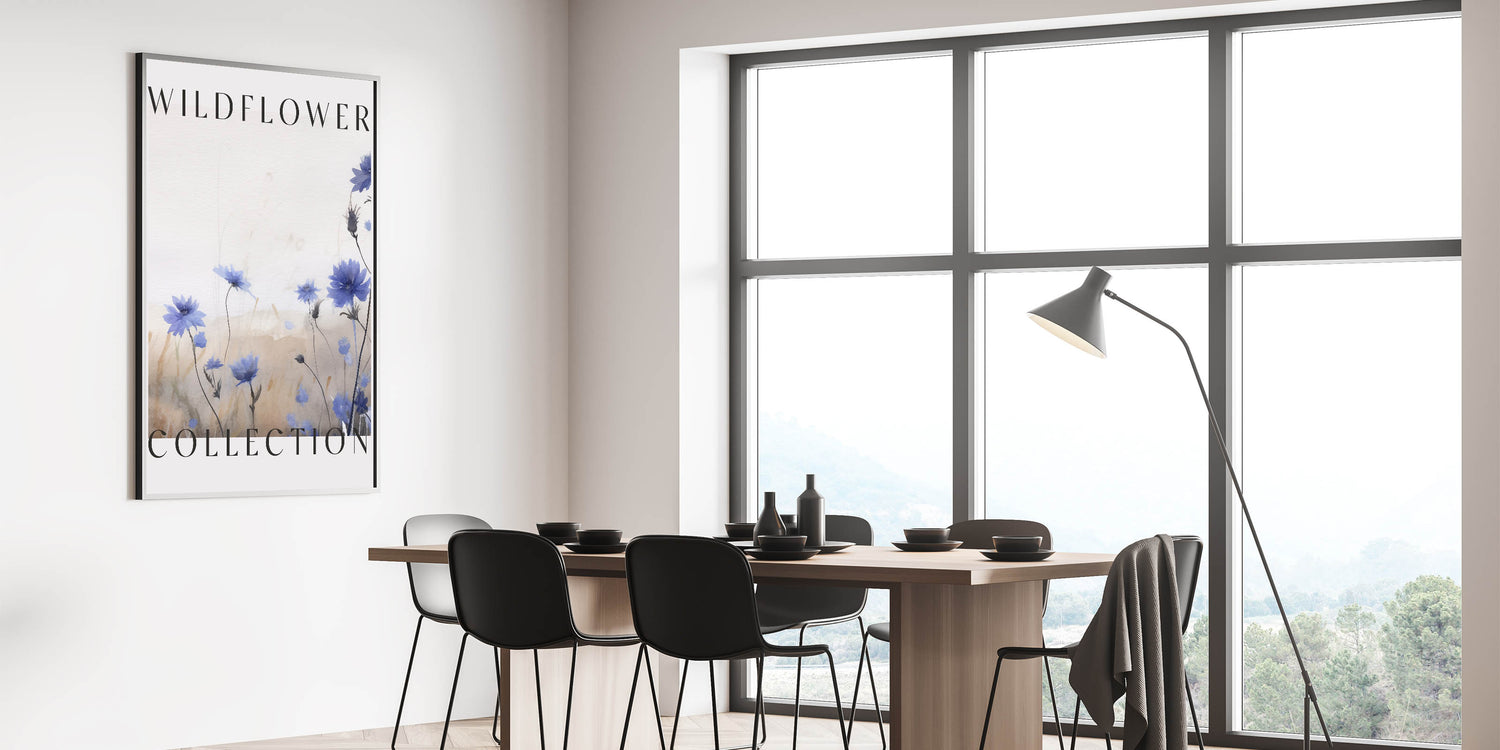 - Elegant depiction of wildflowers, ideal for minimalist and nature-inspired decor