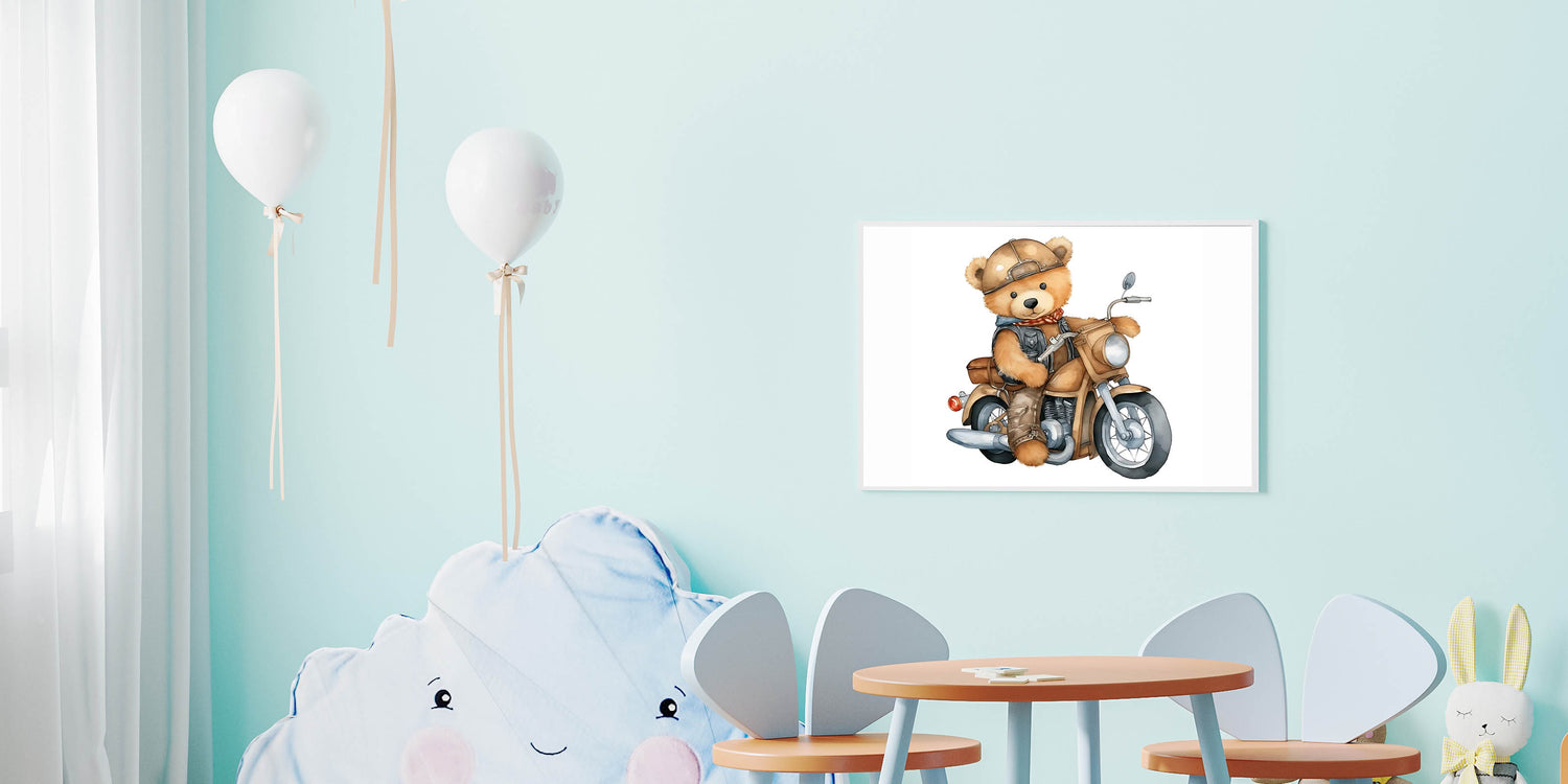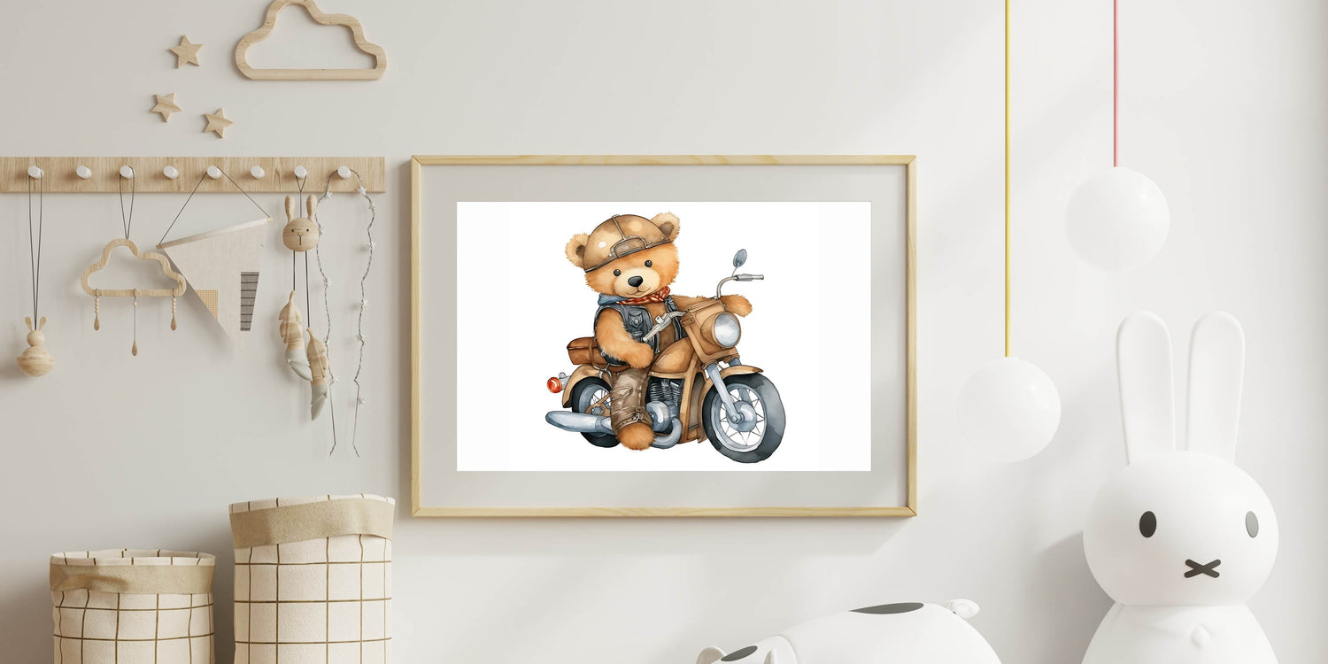 Adventurous Boys Room Wall Art – Teddy Bear on Motorcycle