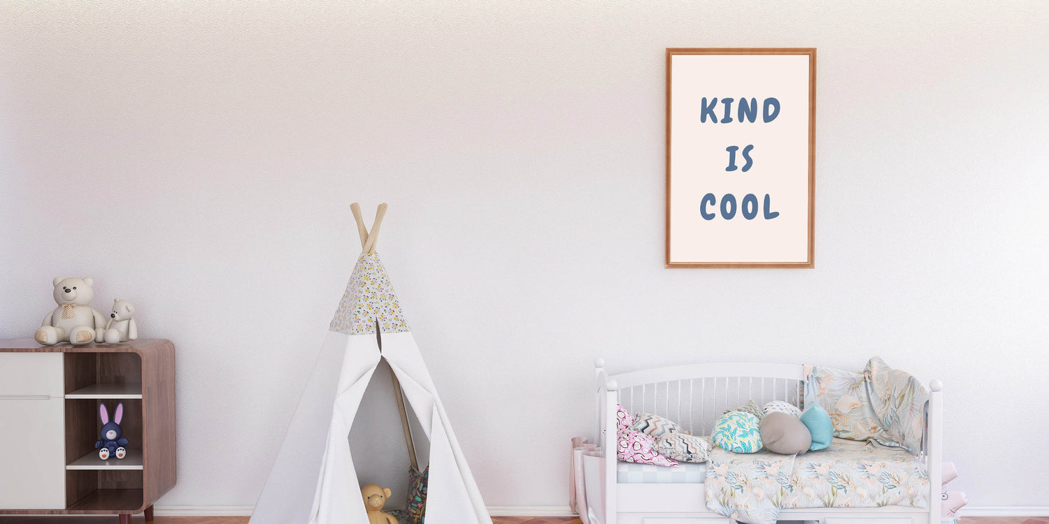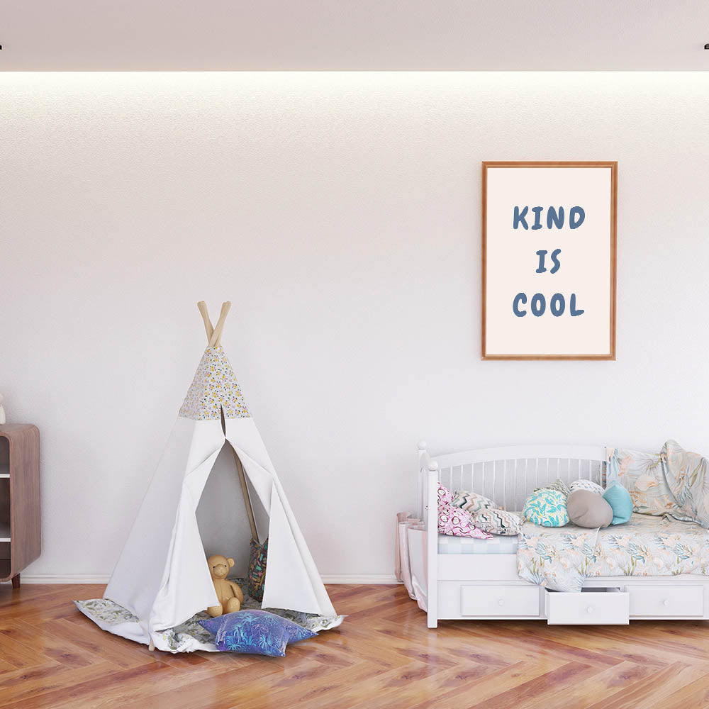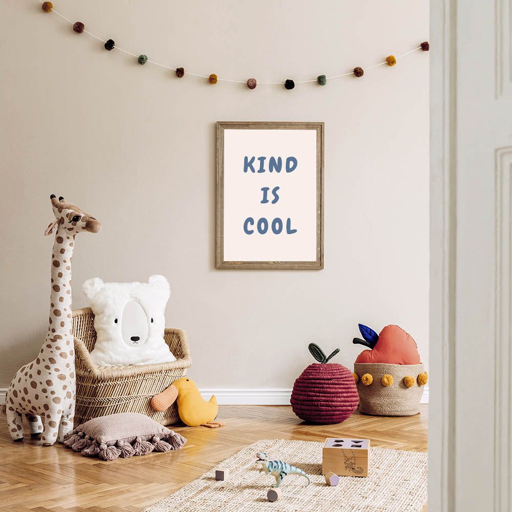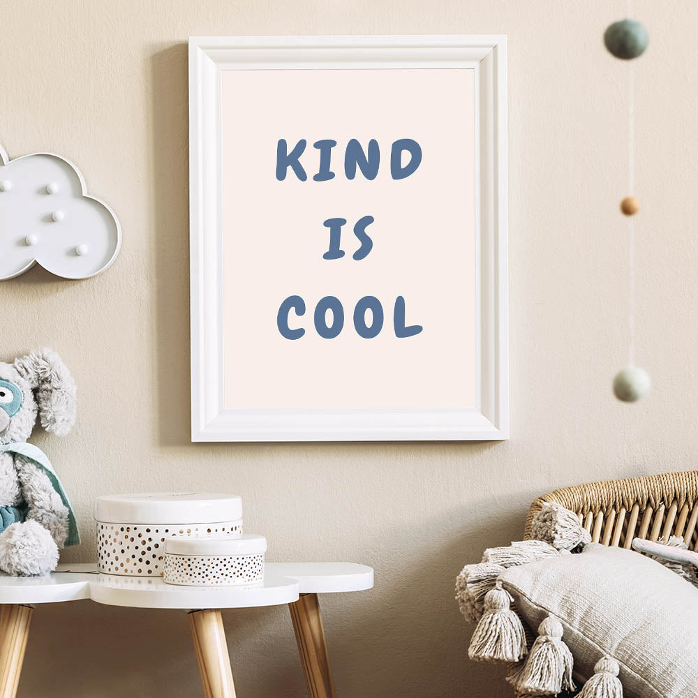 Inspire kindness in your child's space with this Boys Room Wall Art featuring the uplifting message, "Kind is Cool." This minimalist Children's Room Decor piece adds warmth and encouragement to bedrooms, nurseries, and playrooms.