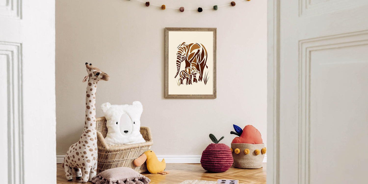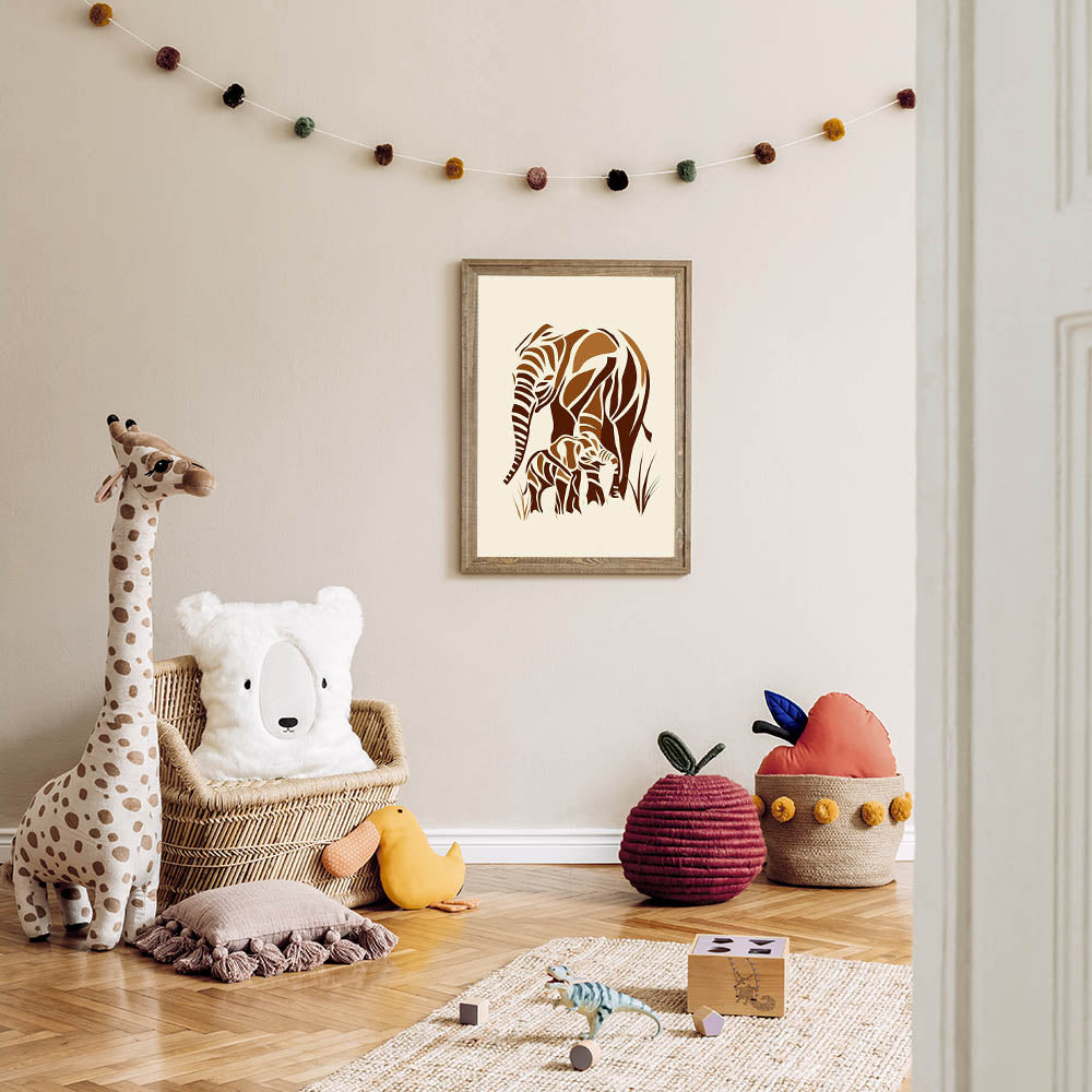 Let the love and warmth of this Safari Elephant Family print create a soothing and adventurous space for your little one!