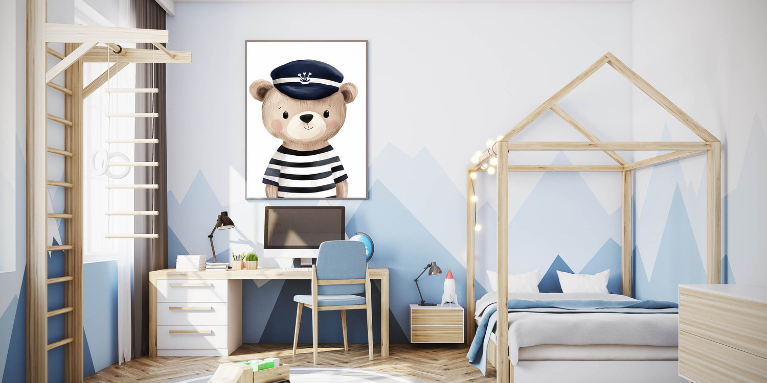 Boys Room Wall Art - Sailor Bear Kids Wall Art for Nursery