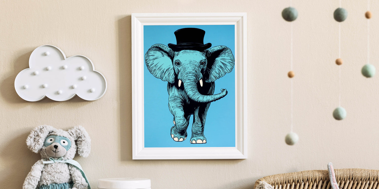 Make a bold statement in your child’s room with this boys wall art print featuring a striking elephant in a top hat. This unique and artistic piece blends classic illustration with modern style, making it a standout addition to kids wall art prints, boys' bedroom art, and playroom wall art. The rich blue tones and black detailing create a sophisticated yet playful aesthetic that works beautifully in a variety of spaces.