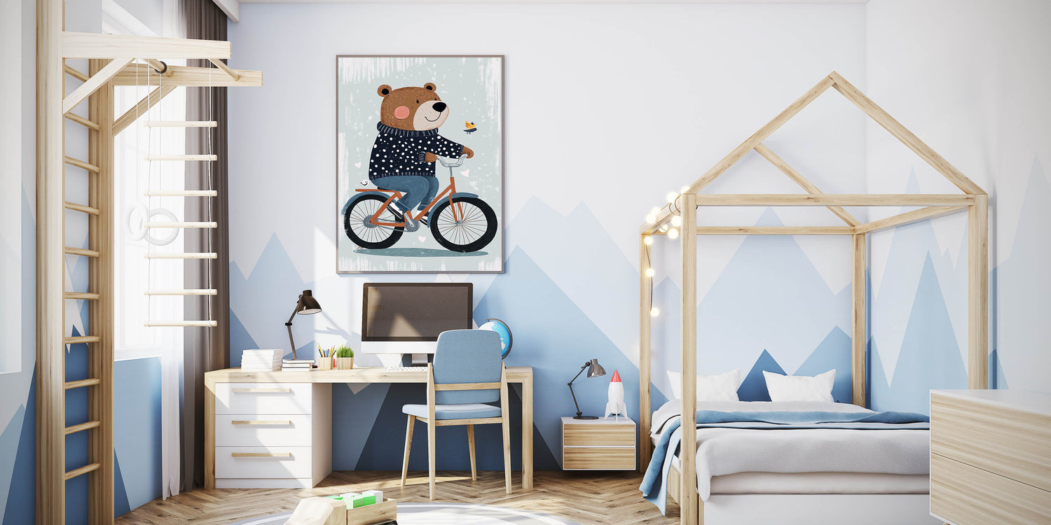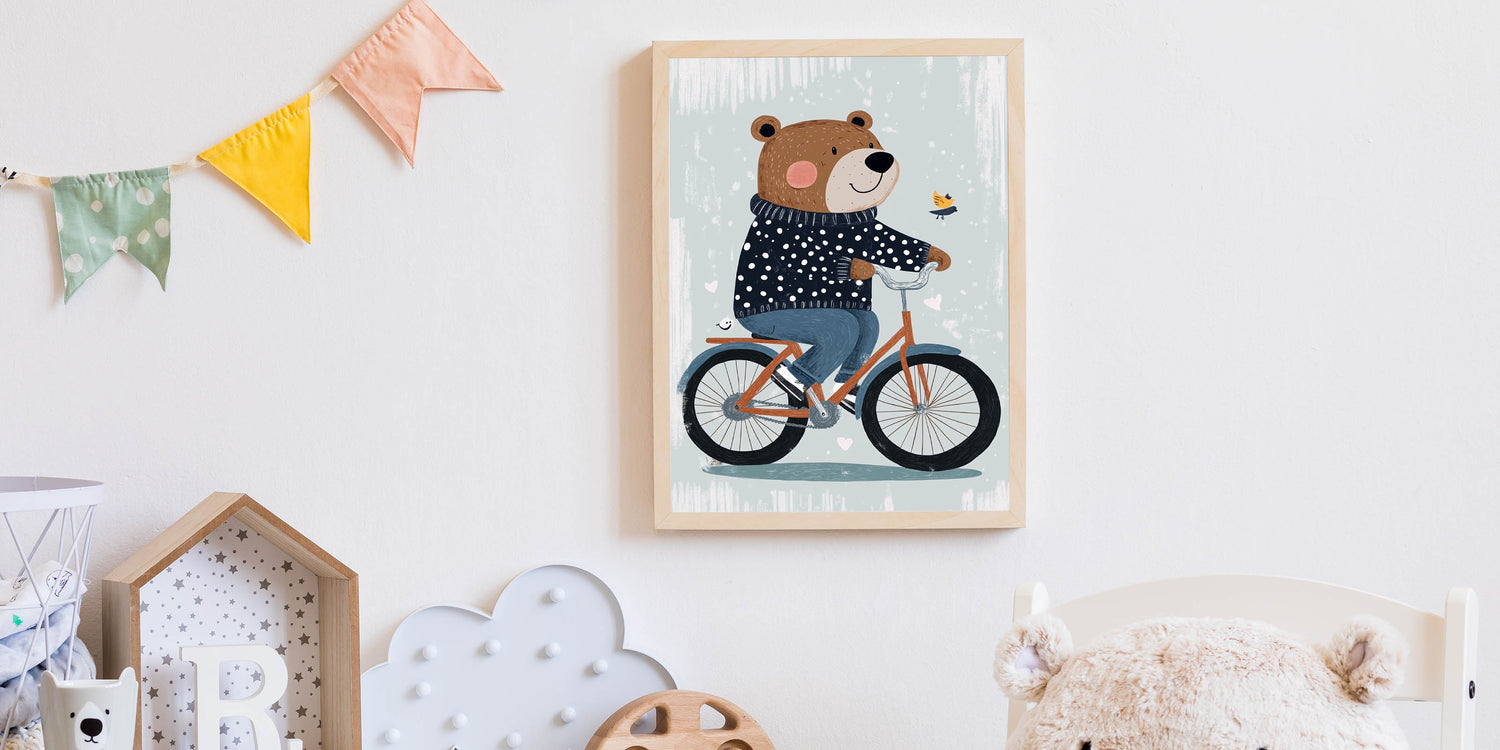 Children's Room Decor - Bear on Bicycle Playroom Wall Art