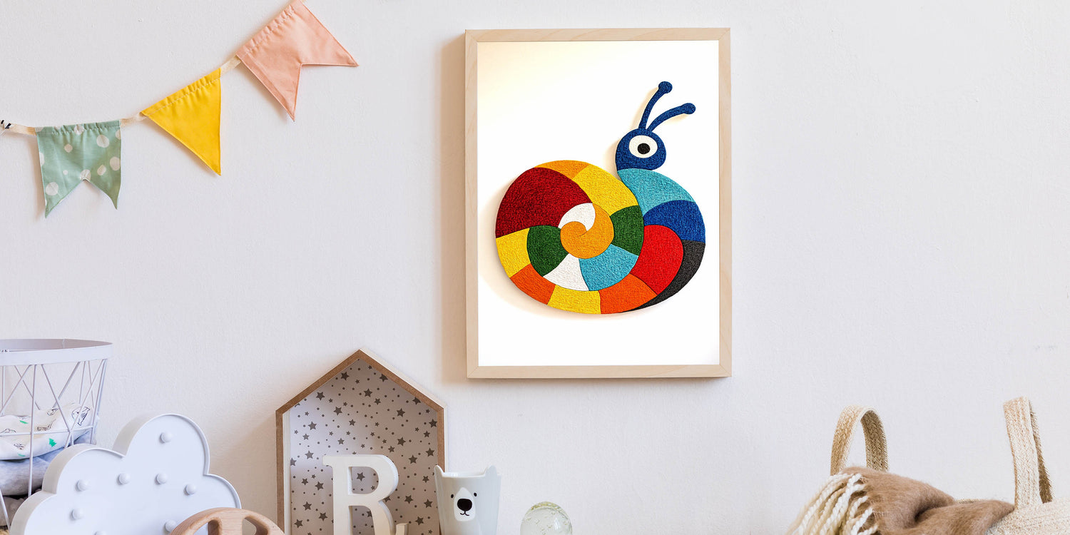 Brighten up your child’s space with this Colorful Snail wall art. Featuring a unique abstract snail with a playful mix of colors and textures, this children's room decor adds a lively and artistic touch to any boys' bedroom, nursery, or playroom. The bold shapes and vibrant hues make this piece a fun and eye-catching addition to a creative space.