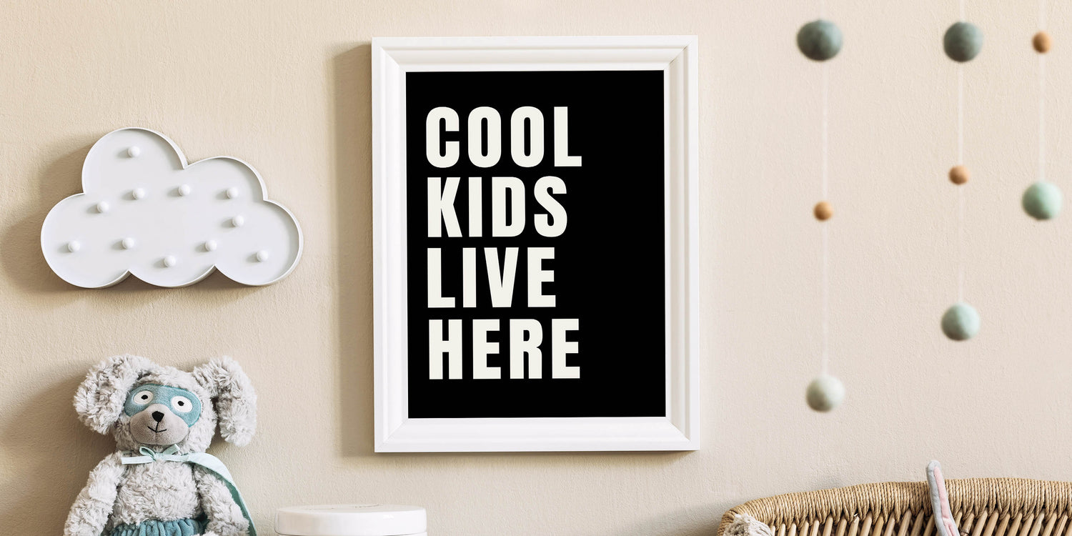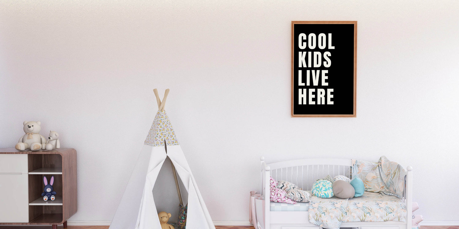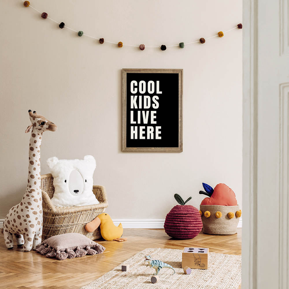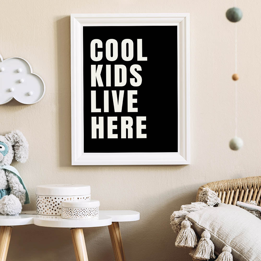 Make a bold statement with the Cool Kids Live Here wall art, perfect for boys' bedrooms, playrooms, or nurseries. This modern children's room decor blends simplicity with confidence, making it an ideal addition to any stylish space. Whether you're decorating a nursery wall art setup or enhancing a boys bedroom art collection, this piece stands out.