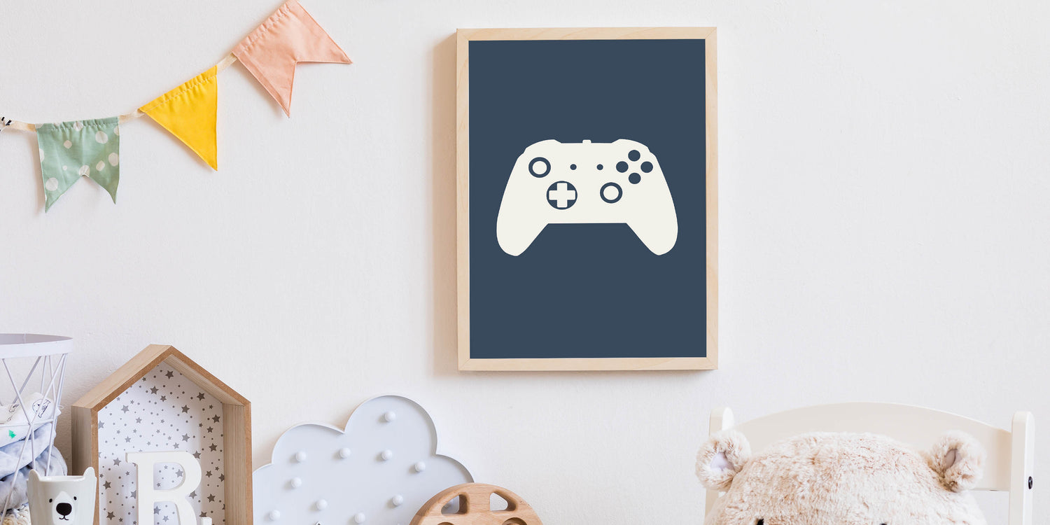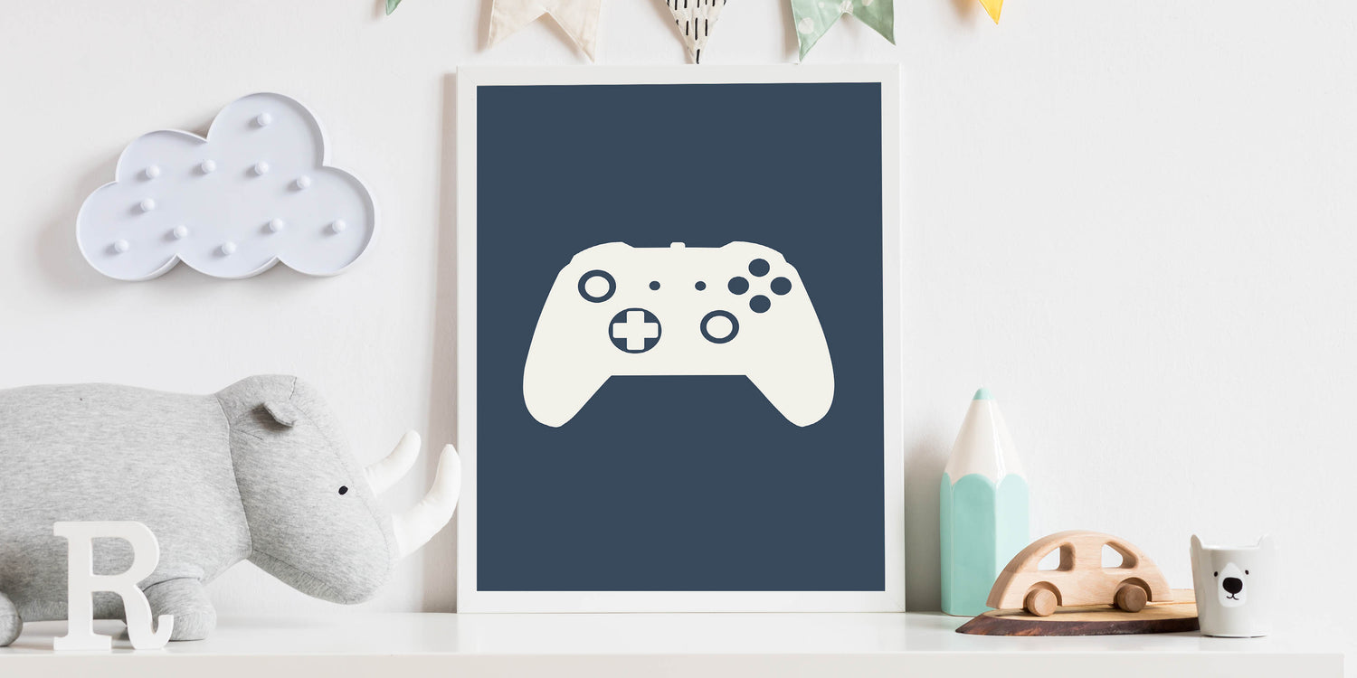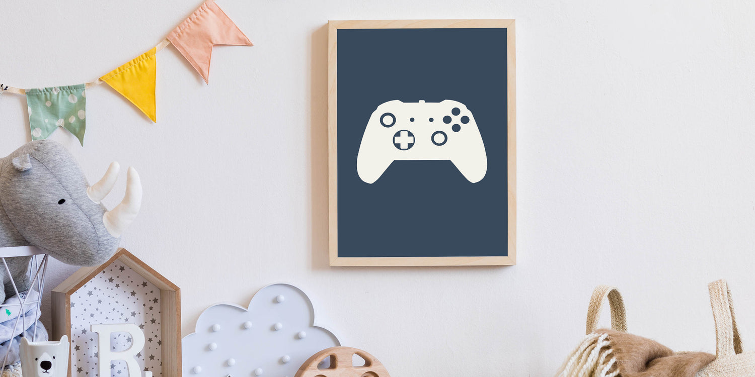 Upgrade your boys' gaming setup with this stylish Game Controller Wall Art, the perfect addition to bedrooms, playrooms, and gaming spaces. Featuring a bold yet minimalistic design with a gaming controller silhouette, this children's room decor is a must-have for young gamers. Whether you're enhancing a nursery wall art setup or creating a boys bedroom art theme, this print brings a cool and modern touch.