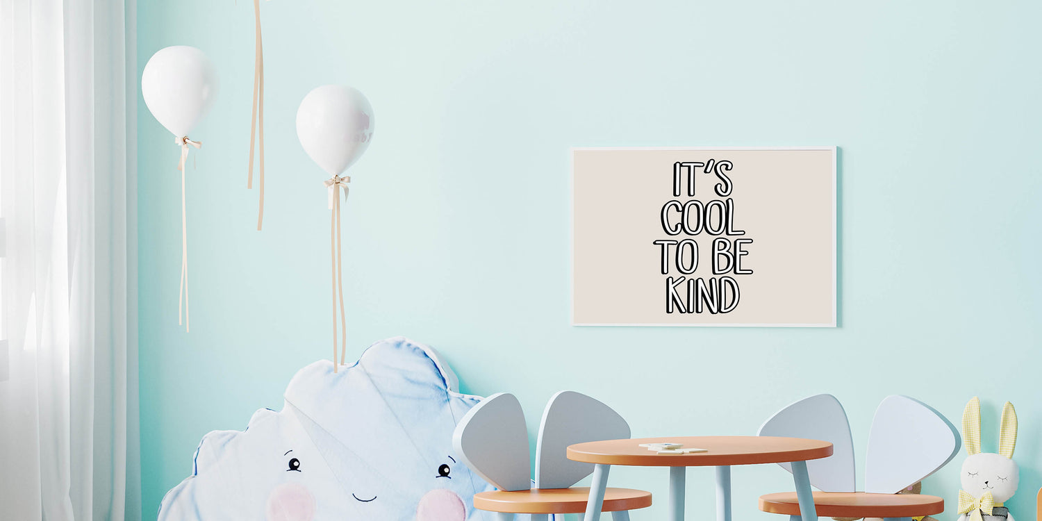 This motivational playroom wall art is a simple yet powerful way to encourage kindness and create a warm and welcoming atmosphere in any child's space.