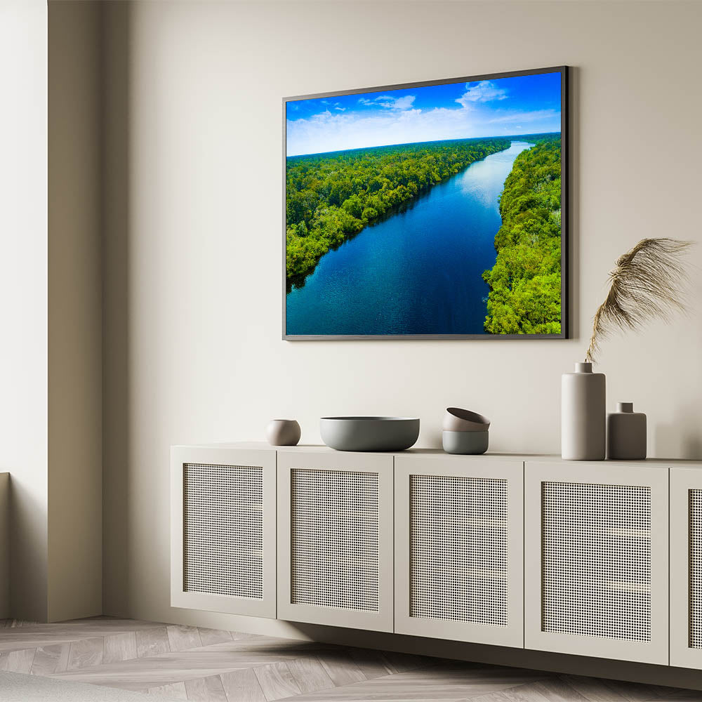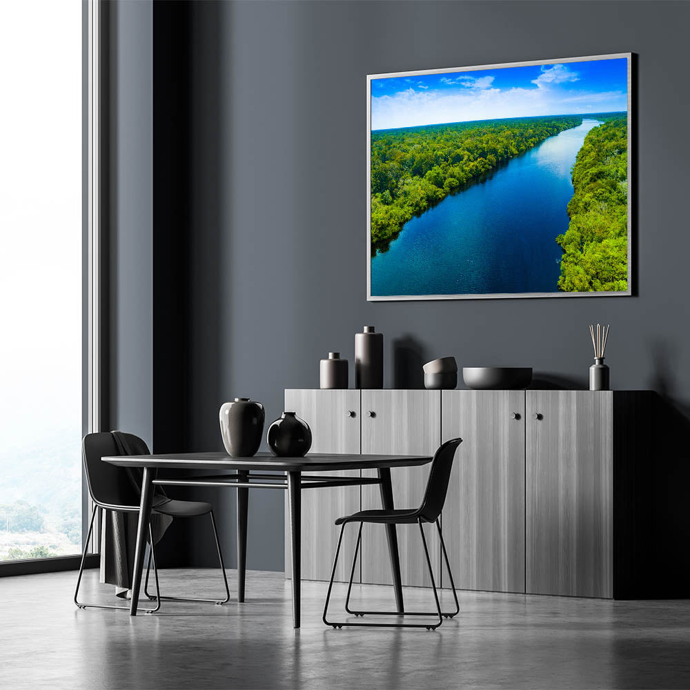 Bring the beauty of the Amazon rainforest into your home with this stunning piece of vibrant Brazil wall art. The lush greenery and deep blue waters of the Amazon River are masterfully captured, making this artwork a perfect reflection of Brazil's natural beauty. Whether you're looking for Brazilian scenery canvas or framed Rio de Janeiro landscape art, this piece adds a touch of South American nature to your space.