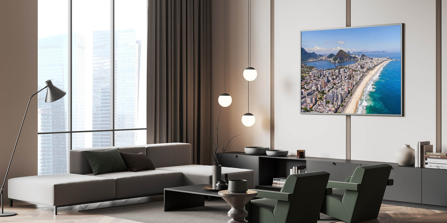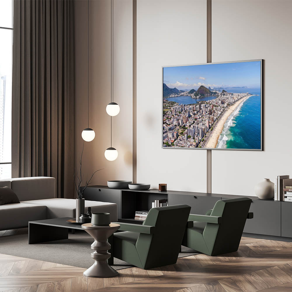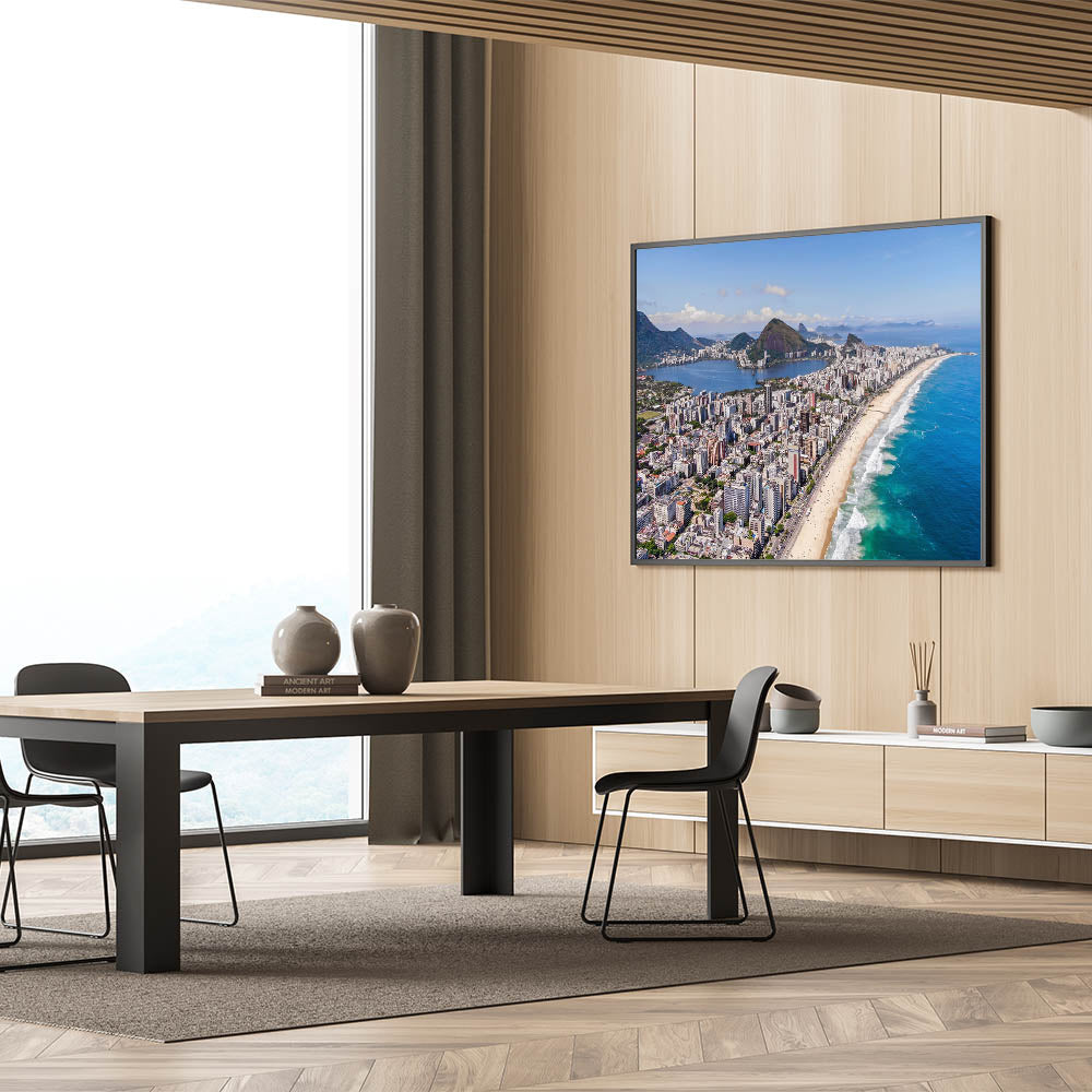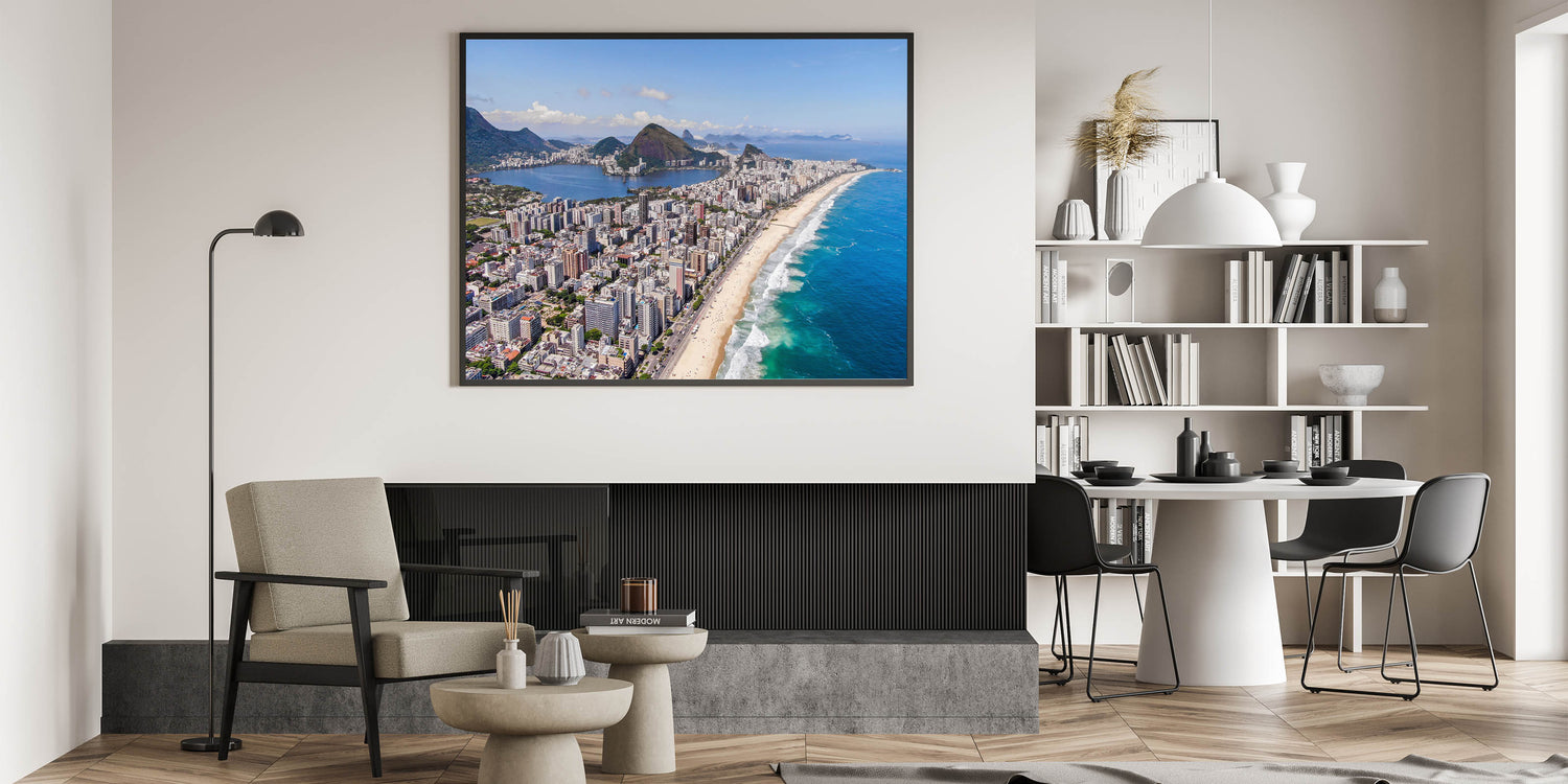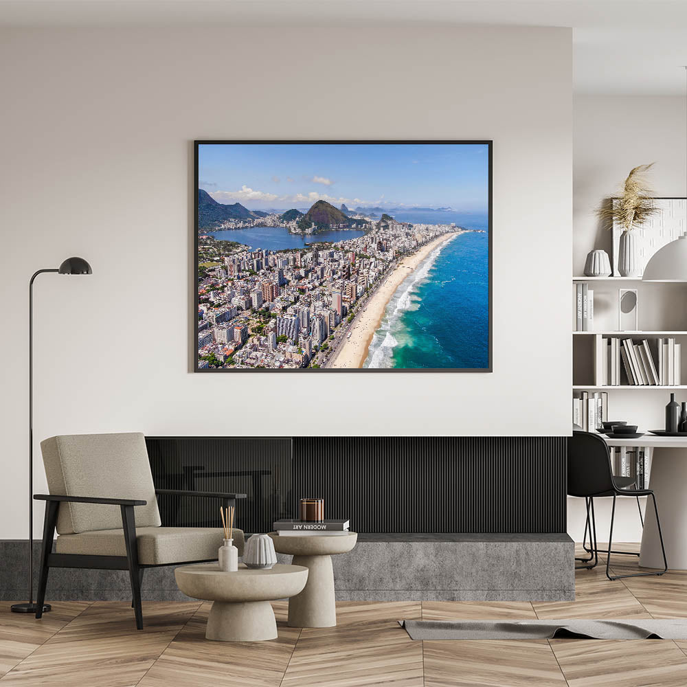 Bring the dynamic energy of Rio de Janeiro into your home with this stunning Rio de Janeiro wall decor, featuring a sweeping aerial view of the iconic Ipanema Beach. This Brazilian landscape print captures the vibrant mix of the city’s towering buildings, golden beaches, and the striking natural landscape that surrounds Rio. Ideal for those seeking Brazil wall art, this artwork offers a breathtaking snapshot of one of Brazil’s most famous urban landscapes.