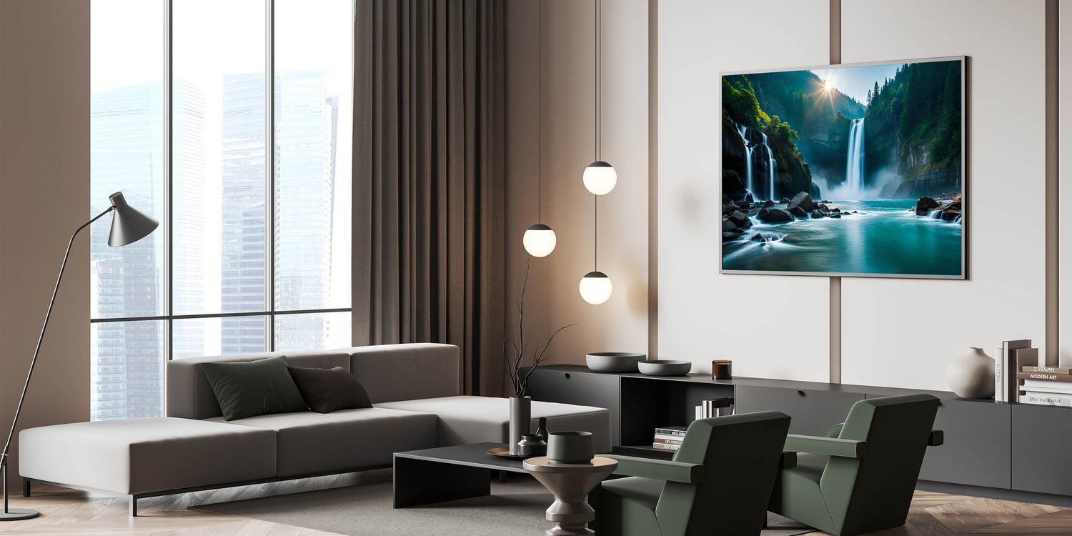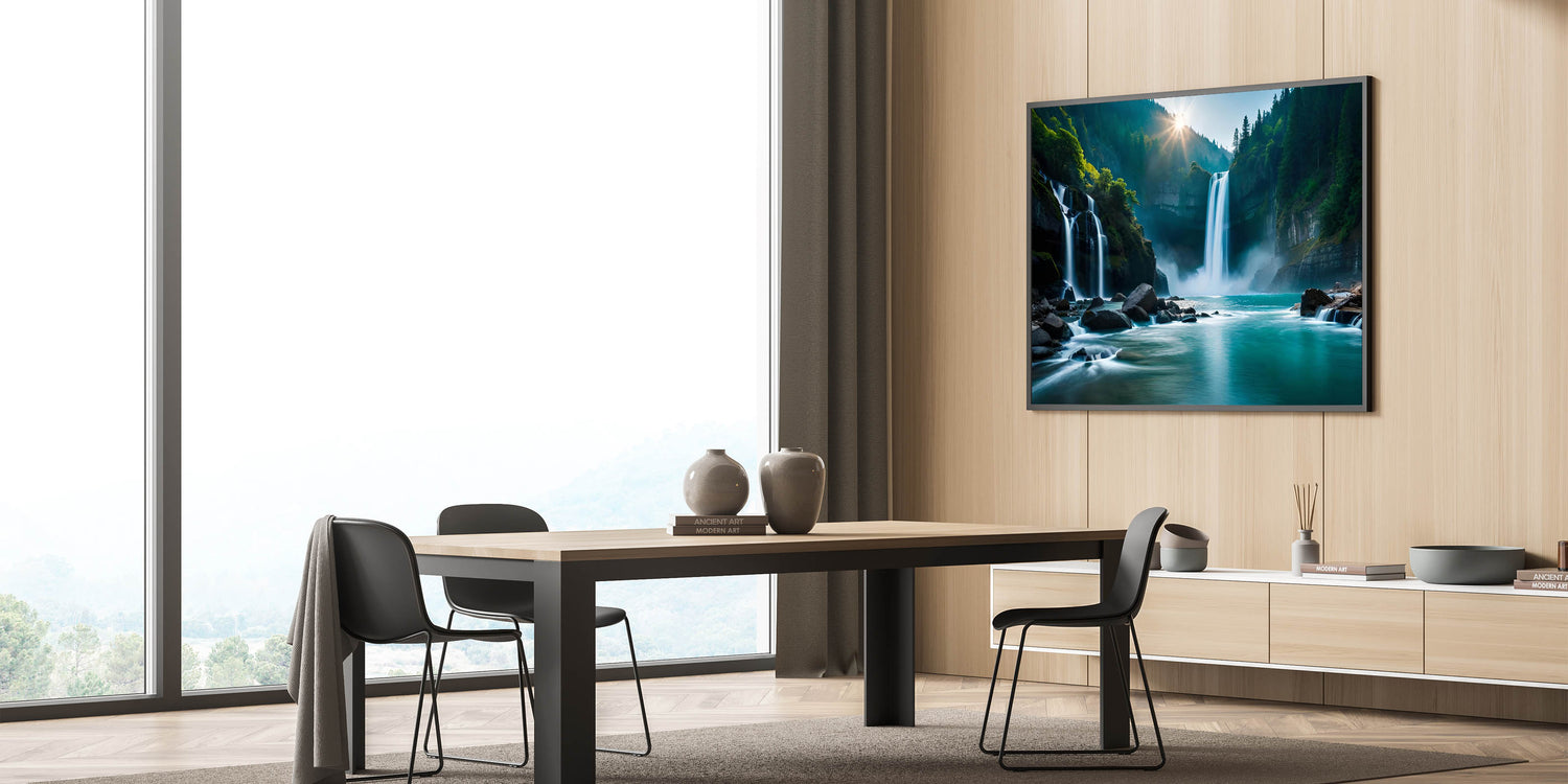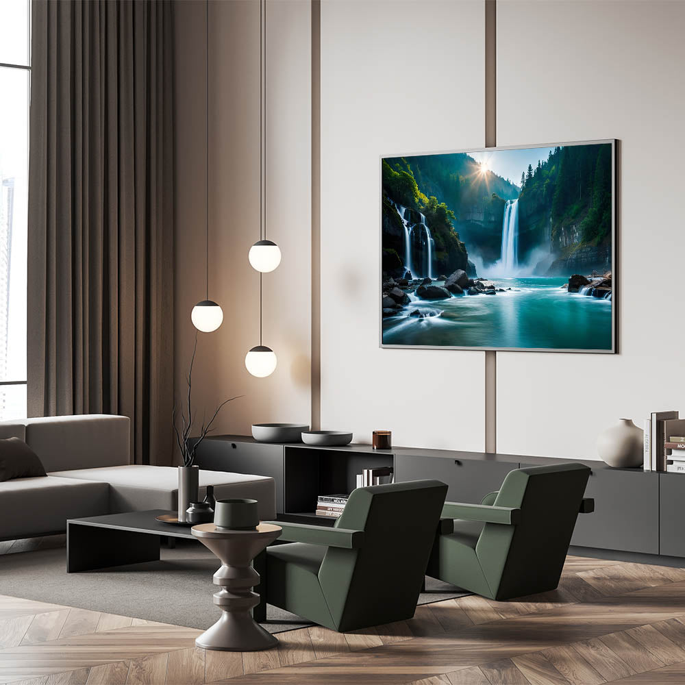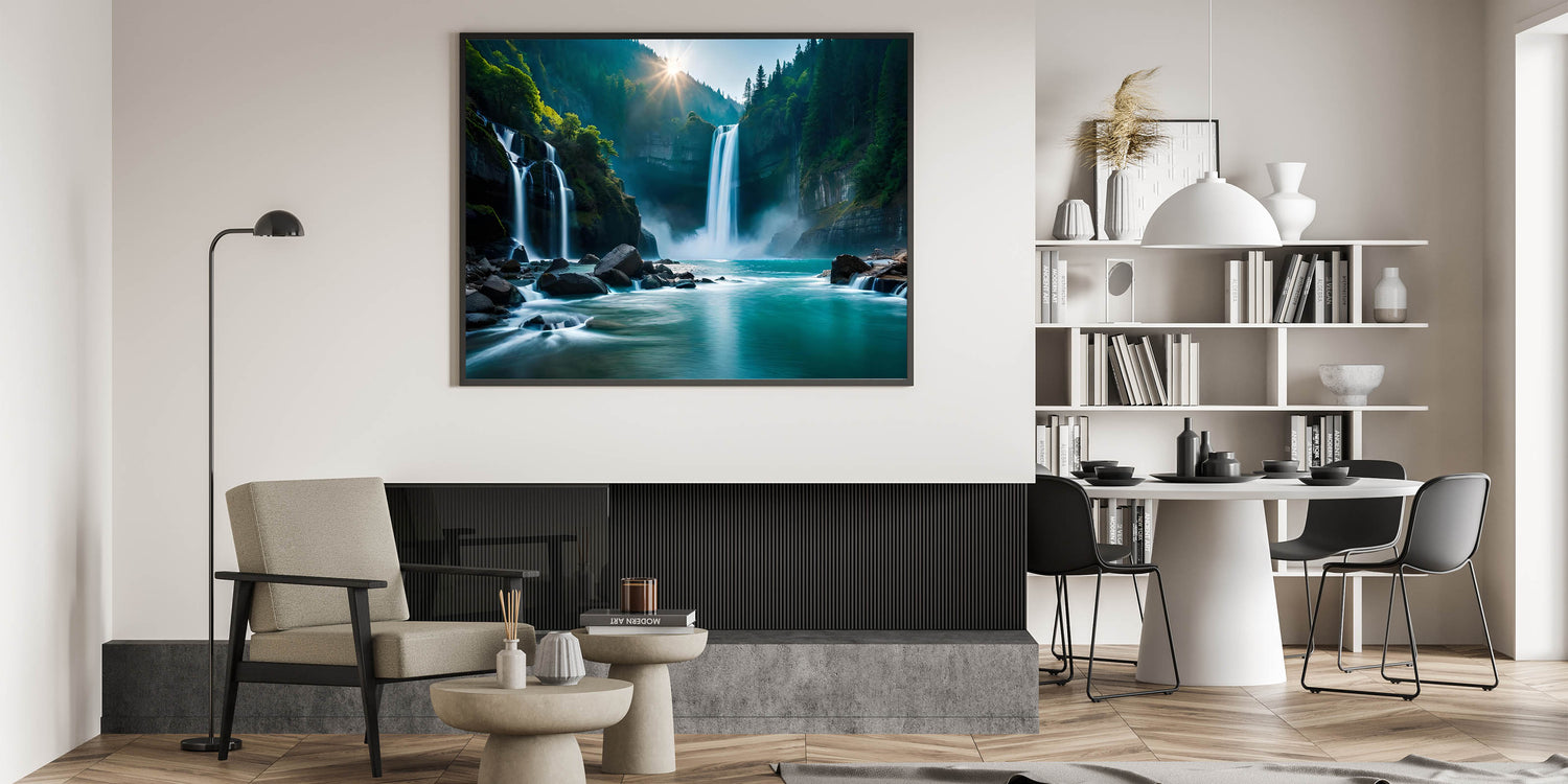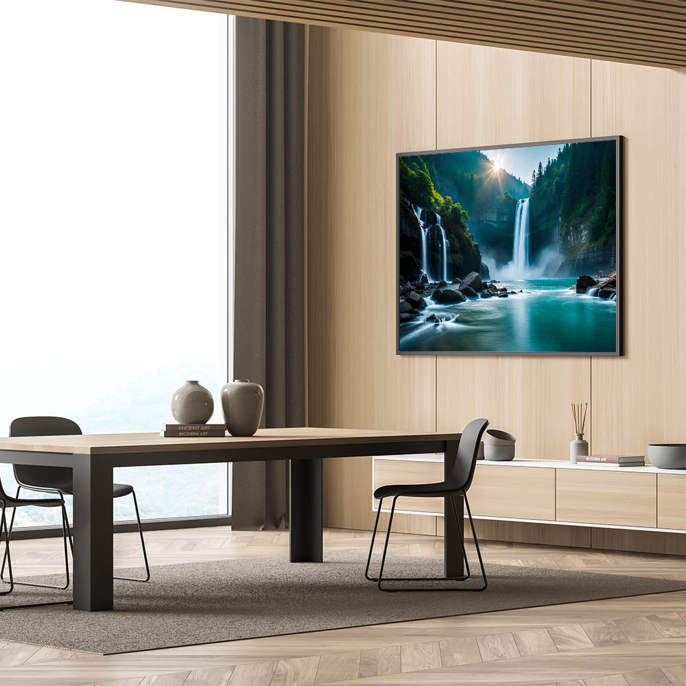 Whether you're looking for a calming accent piece or a bold focal point, this waterfall oasis will elevate your space with the tranquility and majesty of Brazilian landscape prints.
