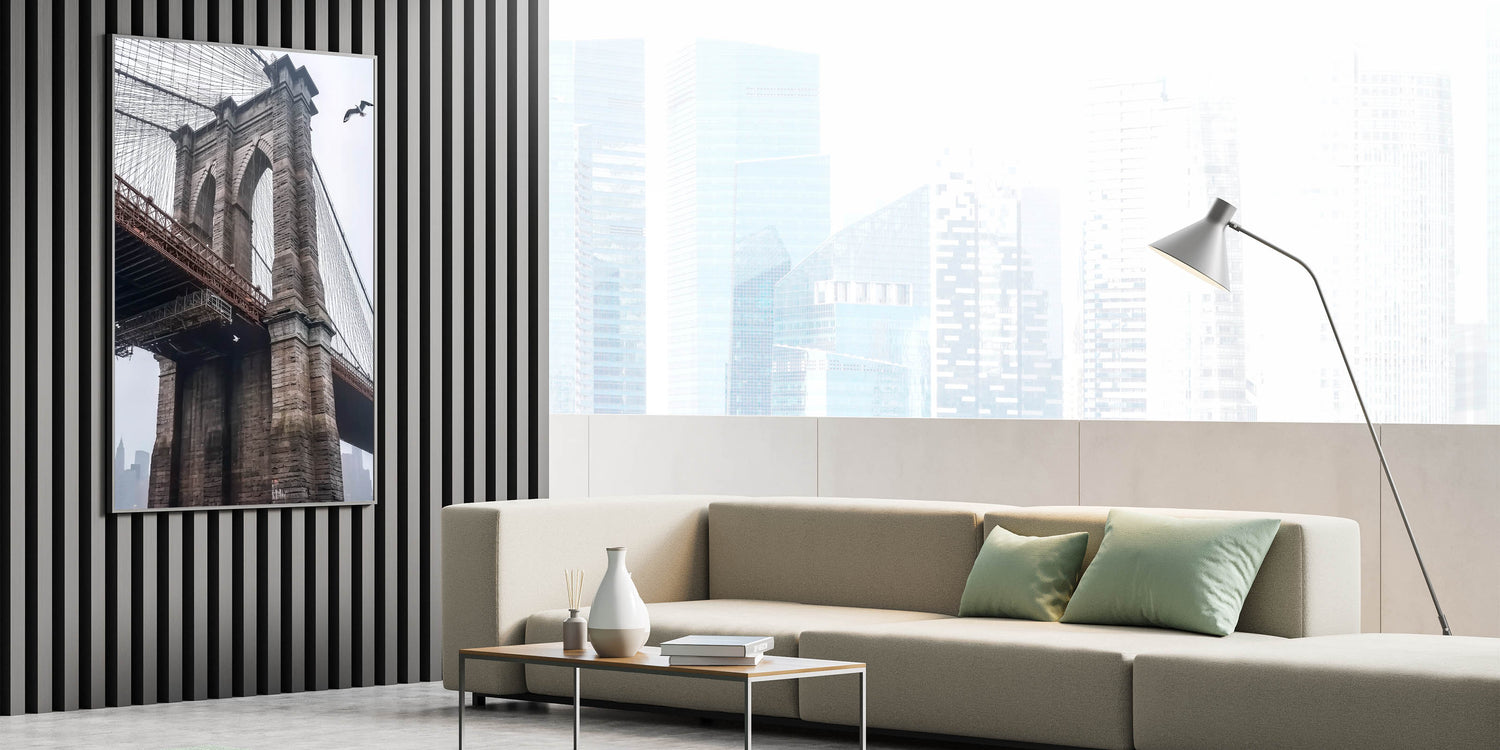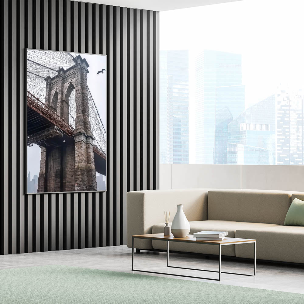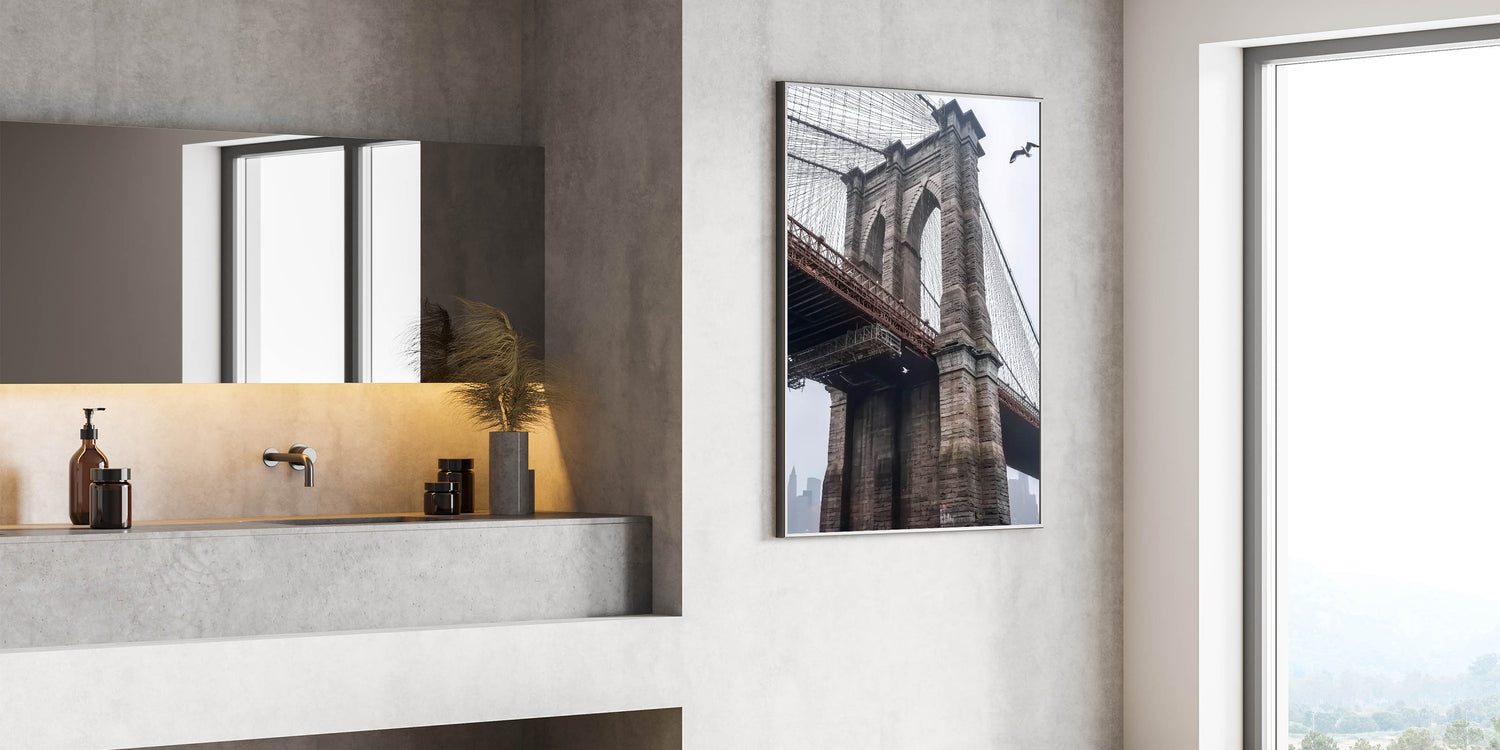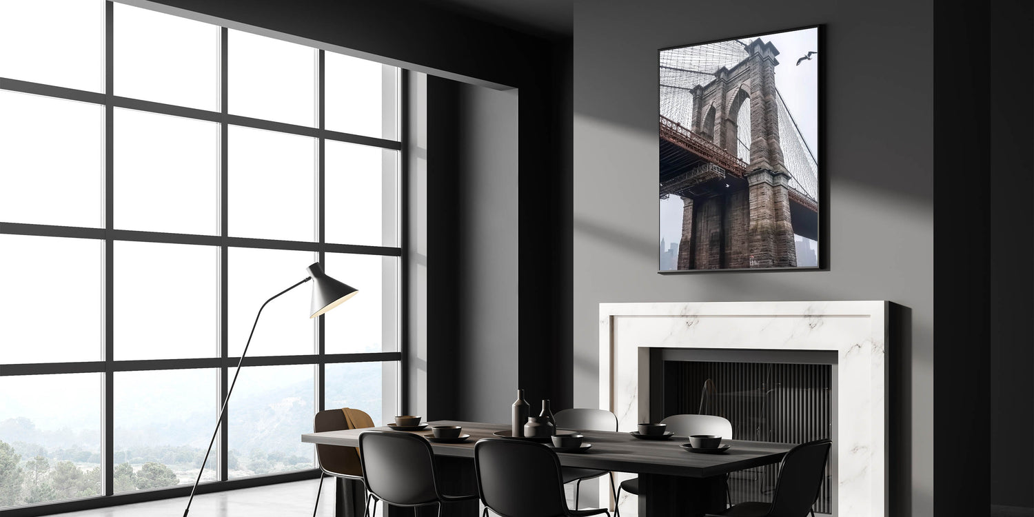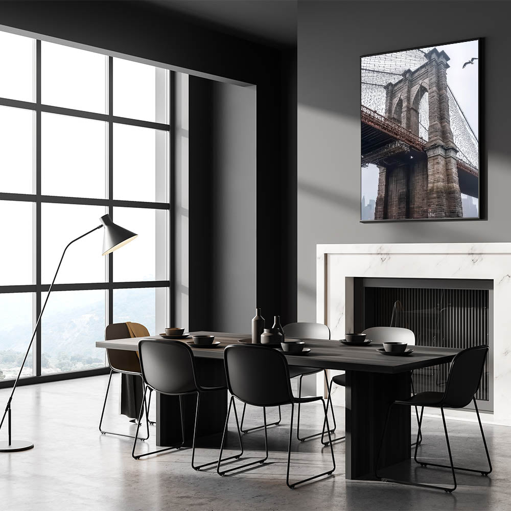 Celebrate the timeless elegance of the Brooklyn Bridge with this decorative bridge wall art. Featuring a close-up view of its intricate stonework and suspension cables, this artwork captures the bridge’s iconic design and historical significance. The muted cityscape in the background adds depth and a touch of modern urban charm, making it a versatile piece for any decor.