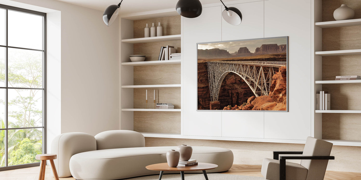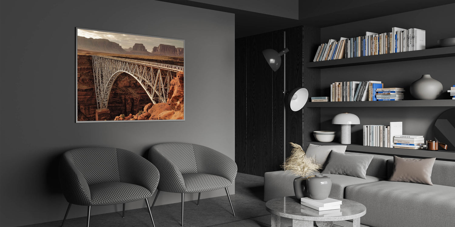 - High-quality bridge canvas prints available in multiple formats, including Stretched Canvas, Framed Canvas, Acrylic Glass, and Framed Acrylic Glass.