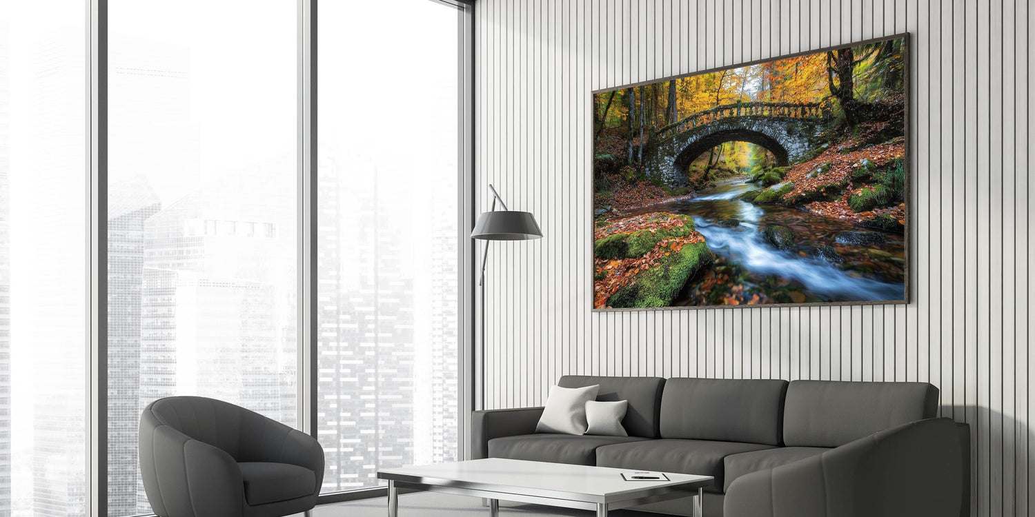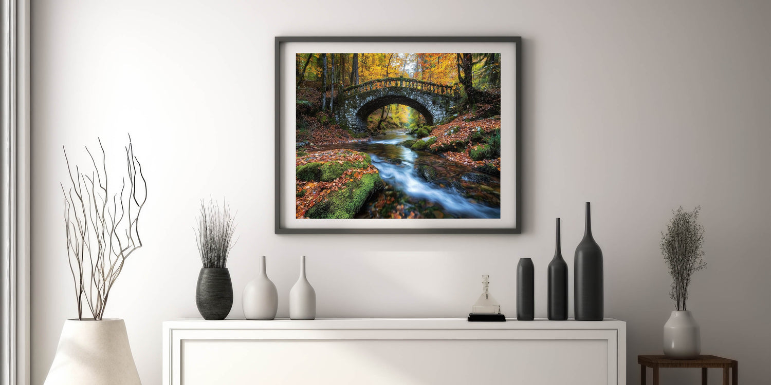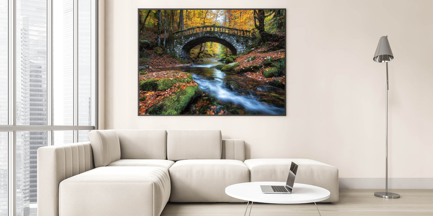 Perfect for nature lovers and fans of serene landscapes, this autumn bridge print blends the beauty of the season with timeless architectural elegance. Whether you're creating a cozy, rustic vibe or adding a touch of nature to a modern space, this artwork is an excellent choice to bring warmth and tranquility into your home.